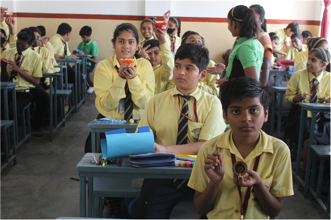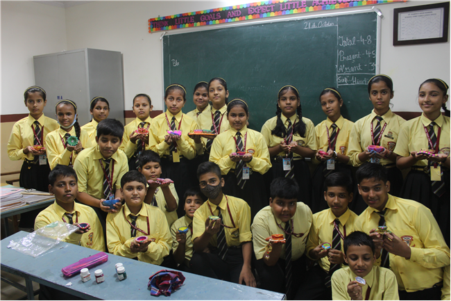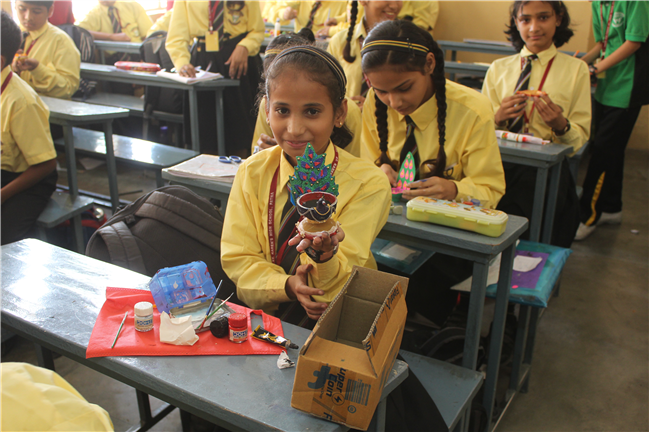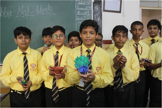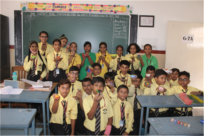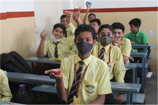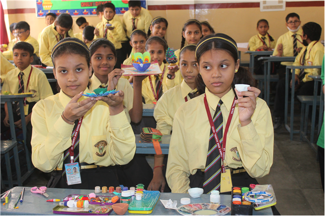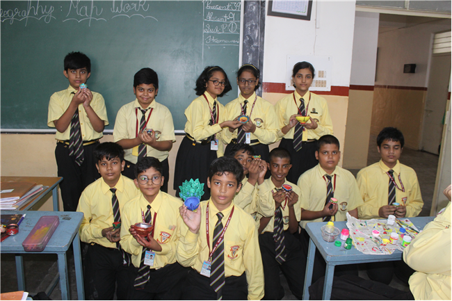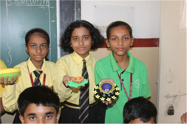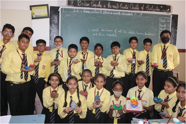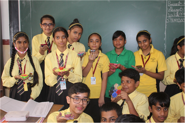 Students celebrated the festival of lights in its true spirit with the “Diya” Decoration” competition for Std. 6th and 7th. They displayed their creativity by beautiful decorating earthen diyas with colours and the embellishments.