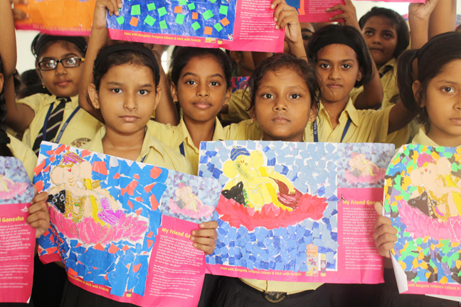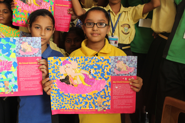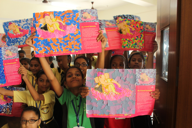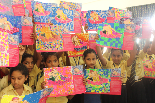 Description: An Activity in Art and Craft was organised on 5-10-2016 by Pidilite. Topic for the activity was on 'My Friend Ganesha'. Pupils coloured the picture of lotus flower and ganesha using Rangeela Tempera Colour and the outline was done in collage form. Pupil have done their work with full enthusiasm. The winners are :- 1. Gungun 3-A 2. Md. Samiullah 3-A 3. Vaishnavi Sinha 3-B 4. Adity Kumari 3-B 5. Shilpy Shreya 4-A 6. Ayush Raj 4-A 7. Kumar Abhikant 4-B 8. Hari Om Kumar 4-B