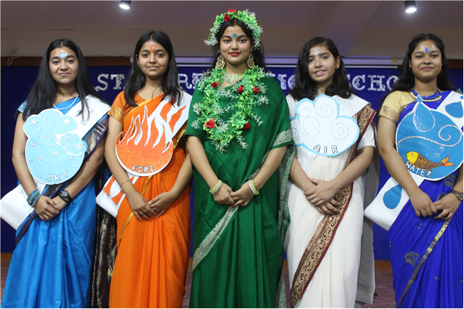 The 10th-grade students concluded the event by representing the five elements of the earth as human models in a short skit that conveyed the message of environmental conservation in a unique and creative way.