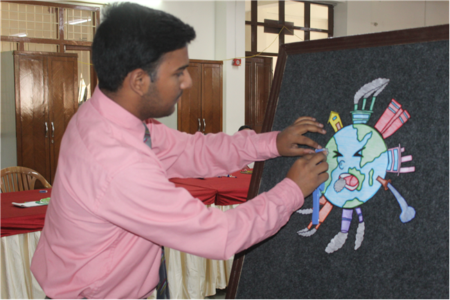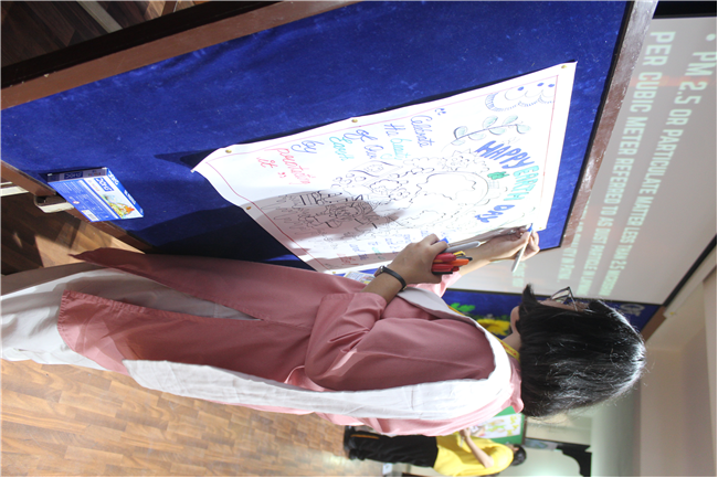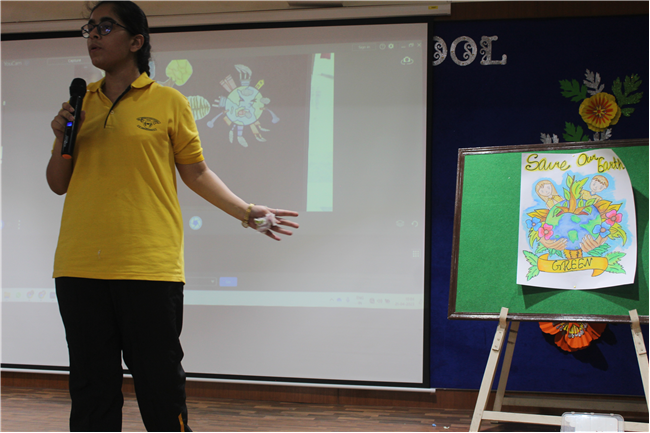 The event kicked off with a creative PowerPoint presentation by the 12th D students, which emphasized the importance of environmental preservation. This was followed by a welcome dance that set the tone for the event. The 12th F students then displayed their artistic skills through a live canvas session, showcasing beautiful drawings that highlighted the beauty of nature and the need to protect it.