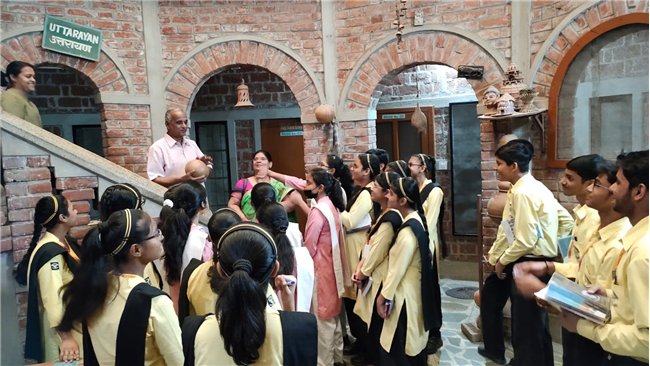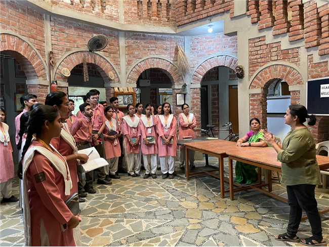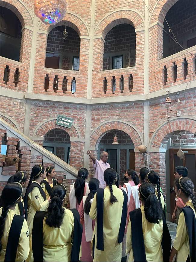 The environment at Tarumitra was very pleasant, with the students able to hear the sweet sounds of cuckoos and breathe in fresh air. The infrastructure at Tarumitra was constructed using recycled materials, and the holy place named "Jal Mandir" was also built using waste materials. The students learned about the practical application of the 5 'R's, which are Reuse, Reduce, Recycle, Refuse, and Repeat. The visit also emphasized the importance of using natural products as gifts.