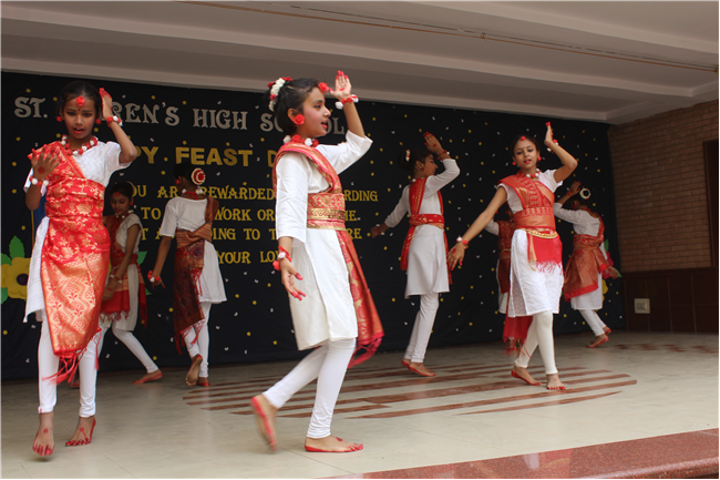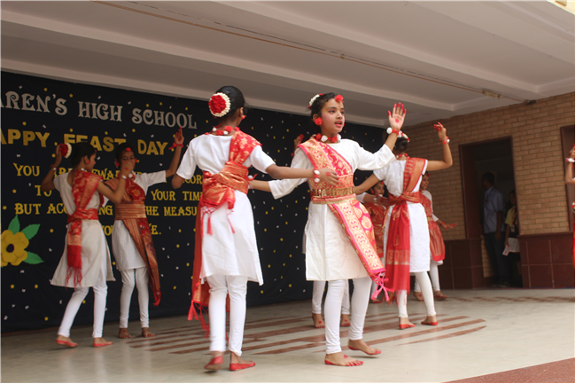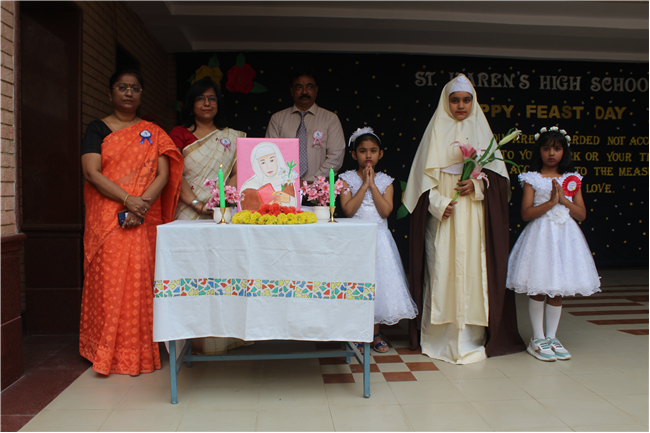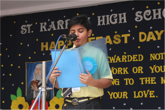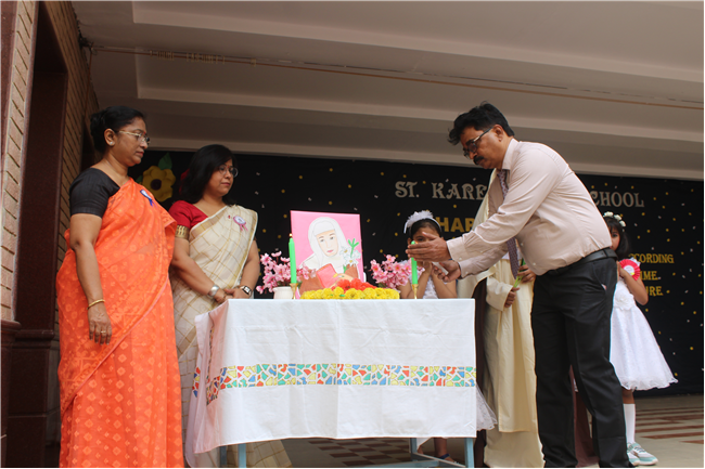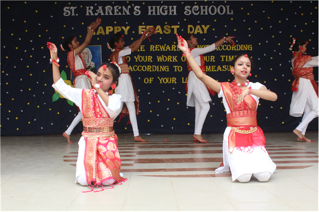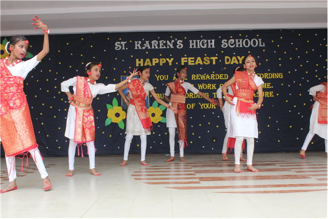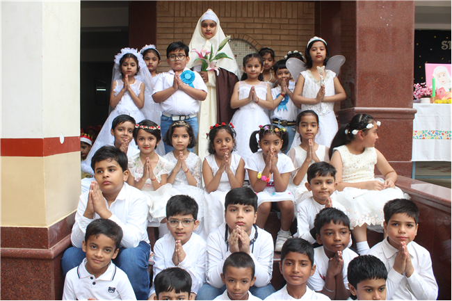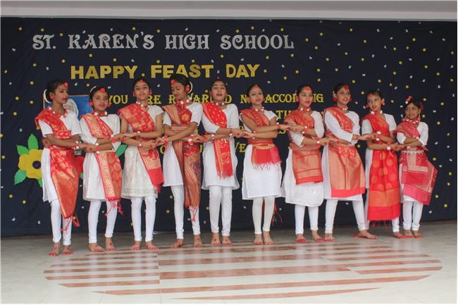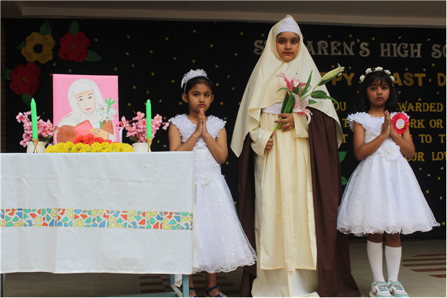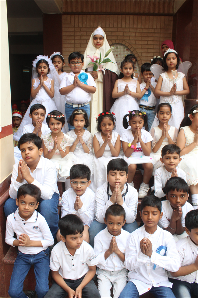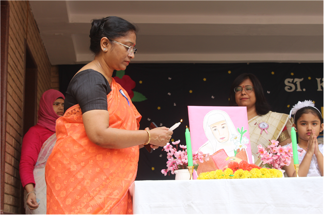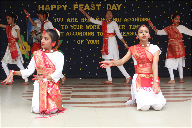 A fantastic and vibrant show was put on by students from grades 1 through 5 and grade 10 to commemorate the Feast Day. The event kicked off with the lighting of candles by the Principal and Vice-Principal. Students of Std. 1 & 2 were looking angelic dressed up in white & stood around the students who potrayed the character of St. Catherine. The program featured Bible readings, speeches on the Feast Day, a colorful welcome dance by the students from grades 4 and 5, a dance by the students from grade 2, and two choir songs performed by the choir group. The combination of all these performances made the program truly magnificent. All the students of the school participated in the feast day activity.