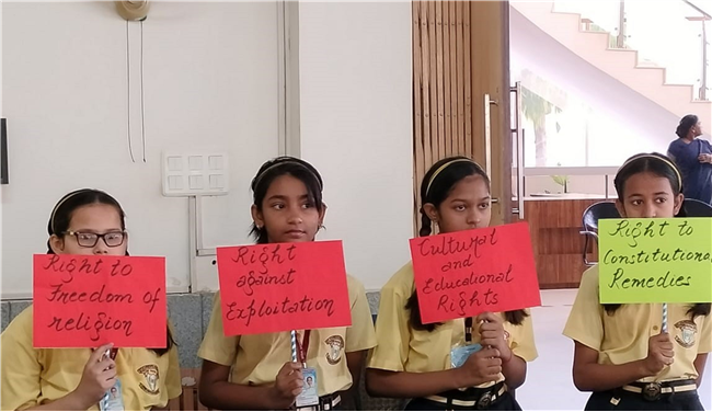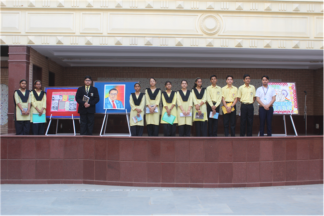 On the 14th of April 2023, a special morning assembly was held to commemorate the birth anniversary of Dr. B.R. Ambedkar. The children donned costumes resembling Dr. Ambedkar and showcased posters illustrating our rights and duties. They eloquently spoke about Dr. Ambedkar's invaluable contribution to our nation. An essay writing competition was also conducted for Std. 9, 10 and 12.