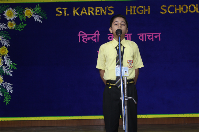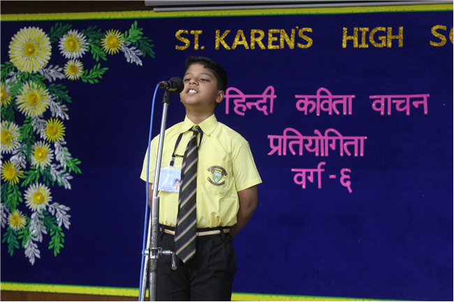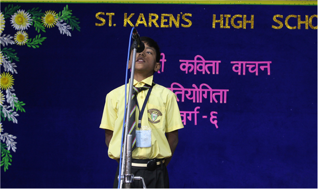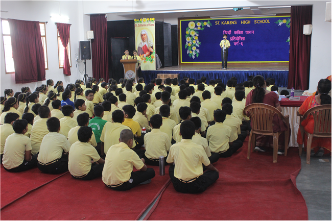 On May 9, 2023, a Hindi Elocution contest was organized for class 6 students in the Pamela hall. There were 20 participants. The aim of the contest was to encourage students to showcase their talent in Hindi elocution and improve their public speaking skills.It was delightful to see the students deliver their poems with confidence and clarity.