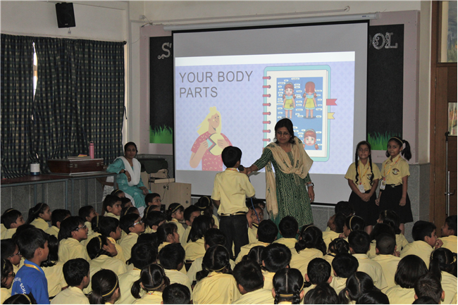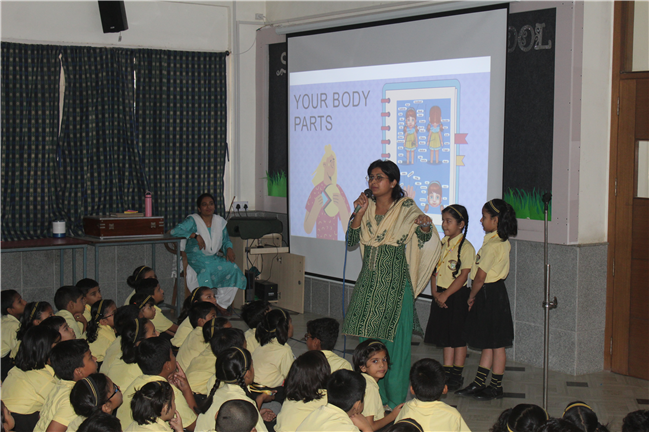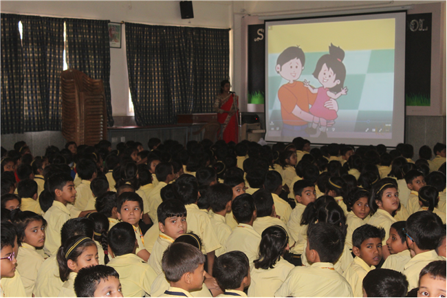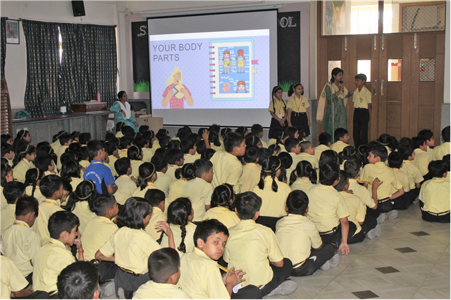 A workshop was conducted on the topic ‘Good Touch & Bad Touch’ for children of standard 1 ,2 & 3 . The objective of the workshop was to educate the children about their body and make them aware of the difference between good and bad touches.The workshop started with a 5-minute animated movie that depicted the difference between good touch and bad touch. Later an interactive session was also conducted. The counselor made the children understand their body and explained to them the importance of personal space and boundaries.The counselor also encouraged the children to share their experiences and difficulties they face. The children, who were of the age group of 6 to 8 years, shared their experiences, and the counselor gave them appropriate advice on how to deal with such situations. The counselor also emphasized the importance of speaking up and telling a trusted adult if they feel uncomfortable or unsafe.