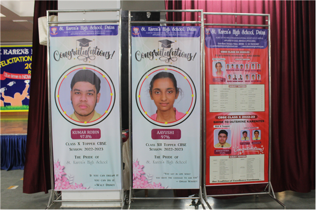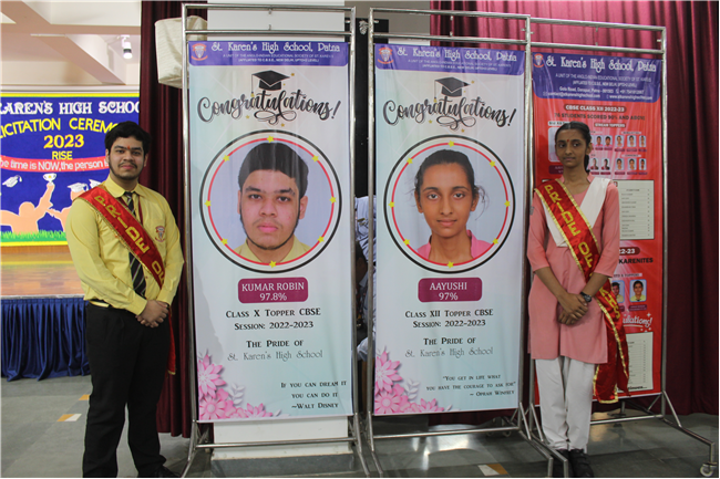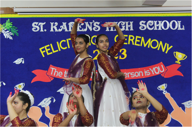 The meritorious students of Std. X and XII of St. Karen’s High School were felicitated on Friday, 19 May 2023 for their brilliant academic performance. These students brought laurels to the school. The function started with the lighting of the ceremonial lamp followed by dance performance by the students. Honourable Joint Director Mr.Edward Galstaun,Academic Director Mrs.Sharon Galstaun,Academic Supervisor Mrs.Shefali Srivastava and Principal,Mrs.Seema Singh encouraged the students. Their words were profound source of motivation for the students. The toppers of the school of class X and XII were felicitated for their exemplary performances and were awarded with momentos and certificates.