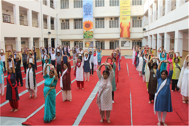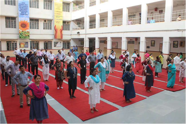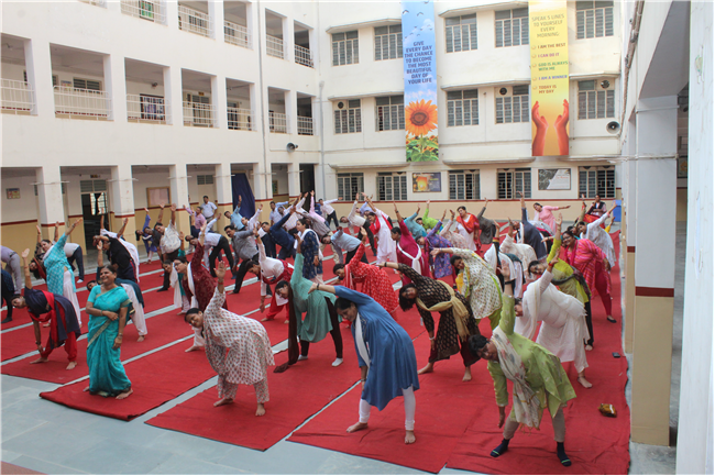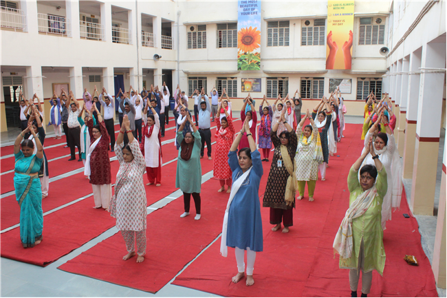 In commemoration of International Yoga Day, a special program was organized on 21st June 2023.The event witnessed the enthusiastic participation of the principal, vice principal, coordinators, and teachers.They actively engaged in performing a variety of yoga asanas,including Vrikshasana (Tree Pose),Tadasana (Mountain Pose), Mandukasana (Frog Pose),Bhadrasana (Butterfly Pose),Trikonasana (Triangle Pose)and Pranayama (Breathing exercises).