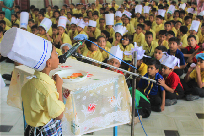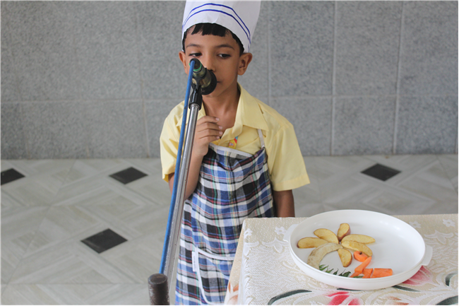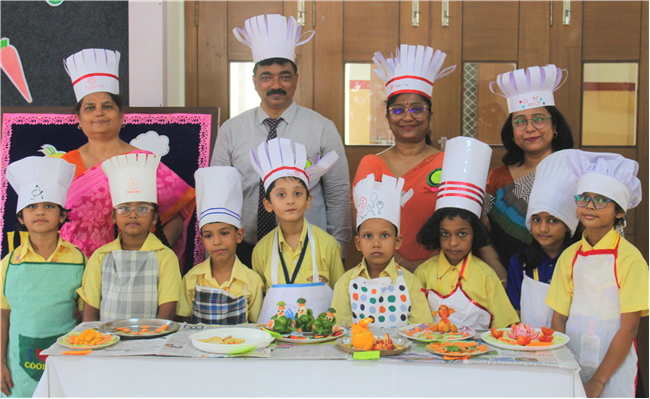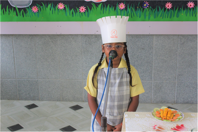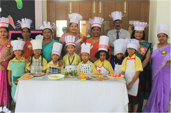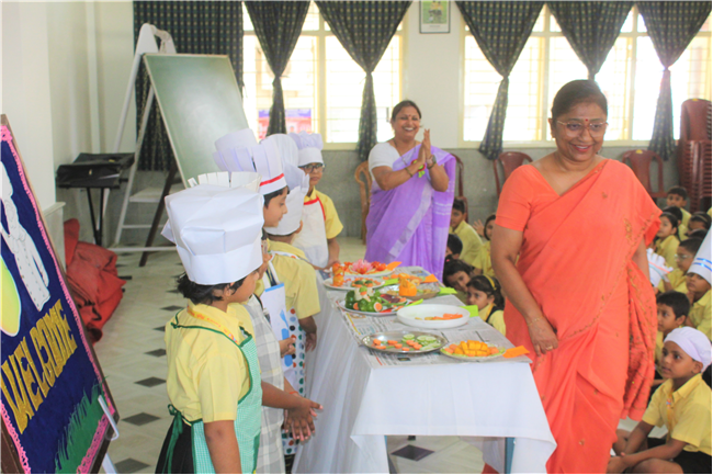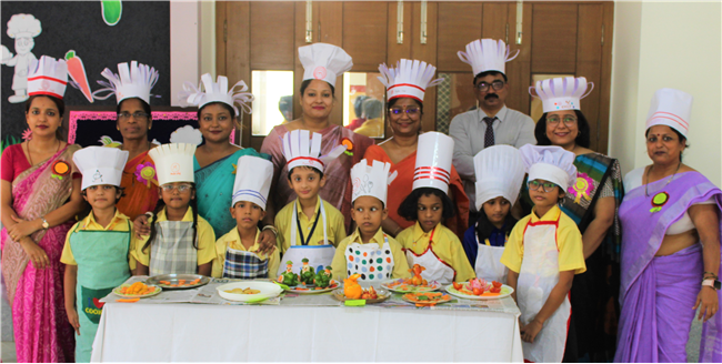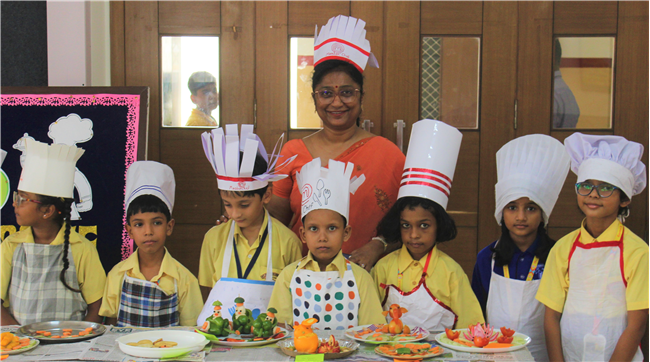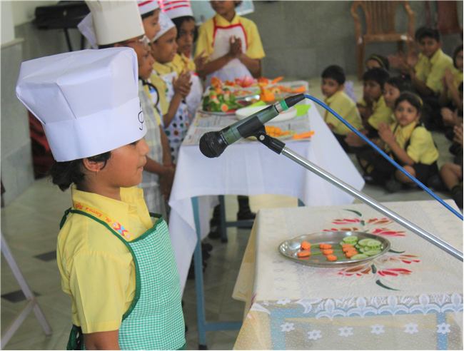 Description: Salad Making Competition was organized on 10th July 2023 in Primary Hall for the students of (std.1).The objective behind the competition was to inculcate healthy food habit and awareness regarding the choice of food among the children.The students participated with immense enthusiasm and interest.The little chef looked adorable in their aprons and a chef cap. They displayed copious types of vegetables and fruit salads.Their creativity was revealed through the beautiful designs and patterns formed with different mouth-watering salads.Parents also guided their wards and supported the competition.Winners are- 1stPrize- Ira Kumari (1 C) and Priyanshi Singh (1 D). 2nd Prize-Ayansh Raj (1 B). 3rd Prize- Jenika Giriraj (1 C). JUDGES- Lucy Miss and Sumita Ma’am .