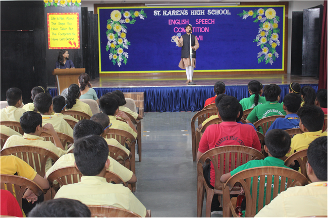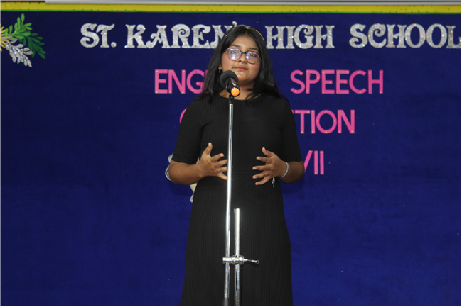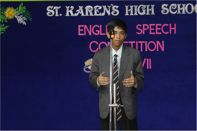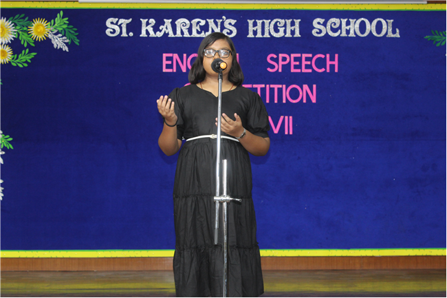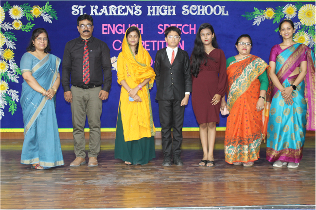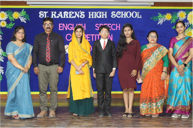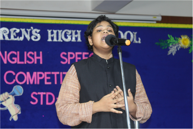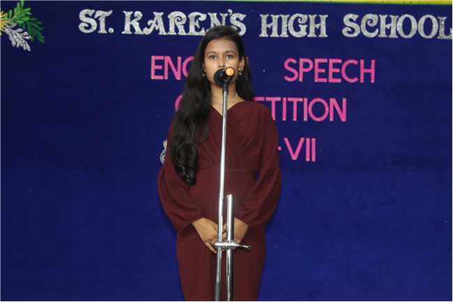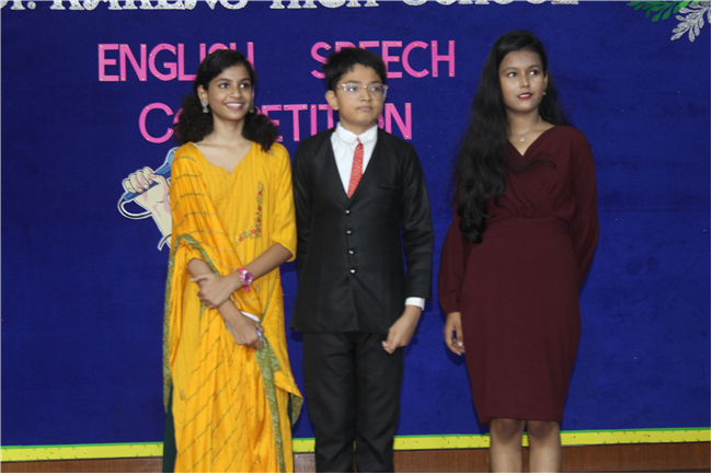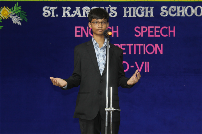 English Speech Competition for Class VII students was organised on 26th July 2023 in Pamela Hall. The competition aimed to improve students' speaking skills and boost their confidence. Ten participants delivered impressive speeches, with Shreya Singh (7 E) securing the first position, Siwansu Kumar (7 C) in second, and Vaishnavi Kumari (7 J) in third place. The event received praise and encouragement from the Vice Principal and the judges, Sumita Guha and Seema R. Joseph. Congratulations to all participants for their outstanding performances!