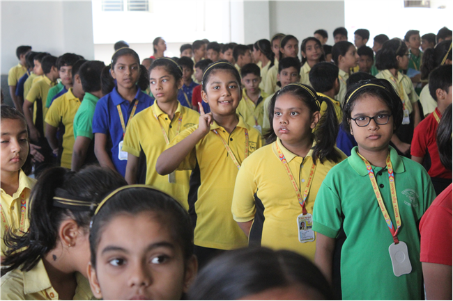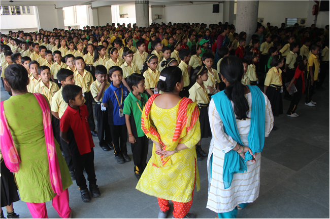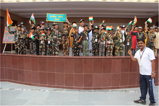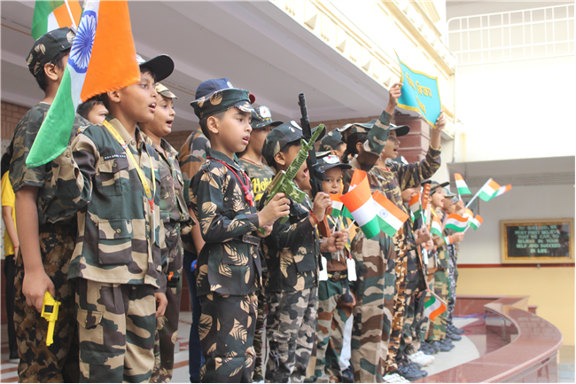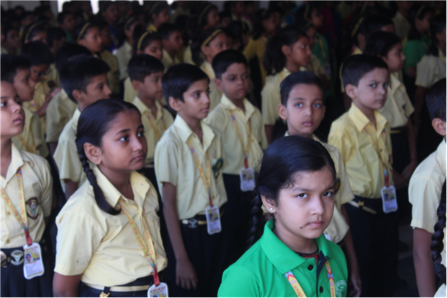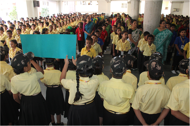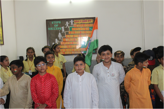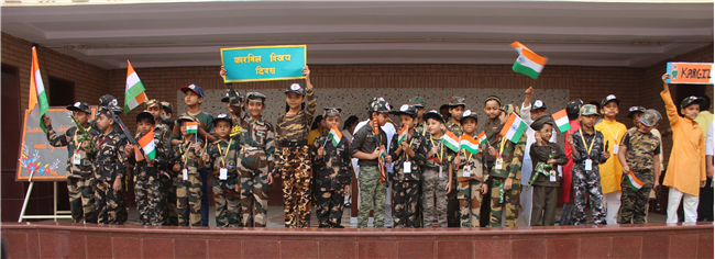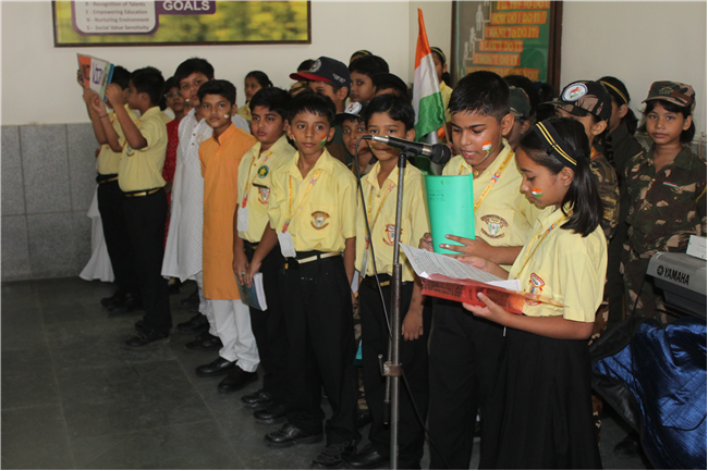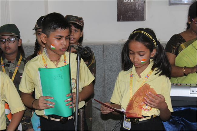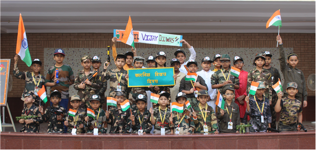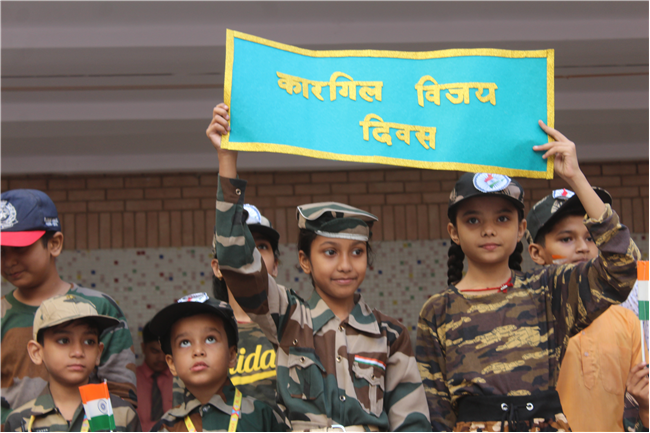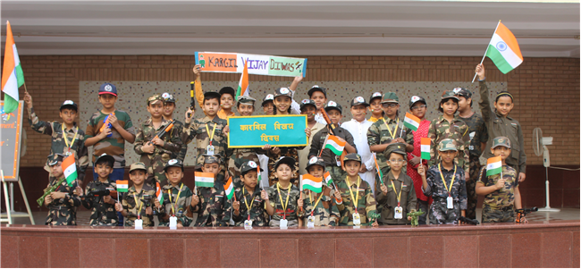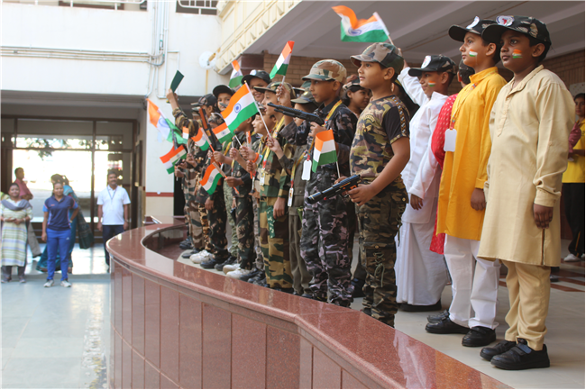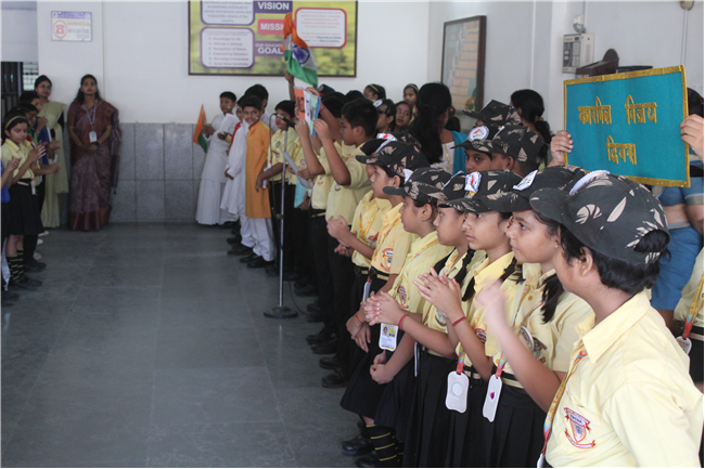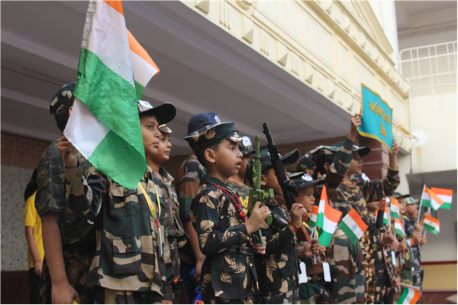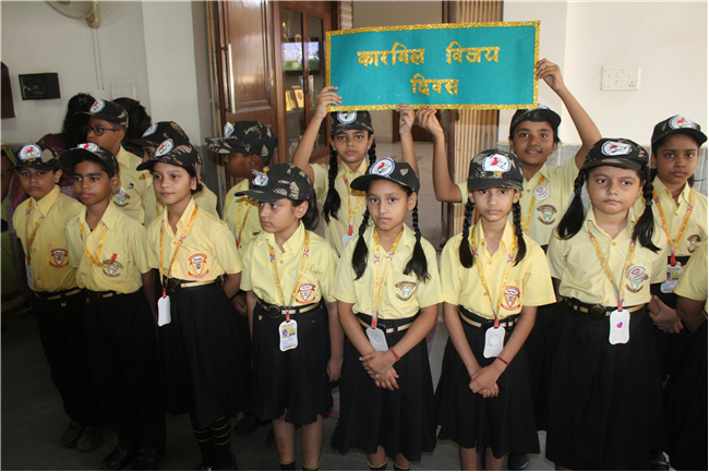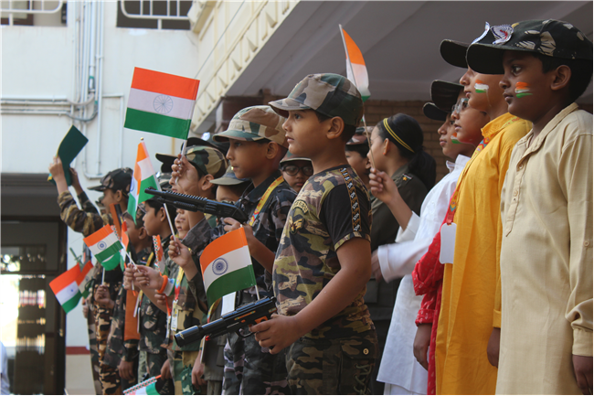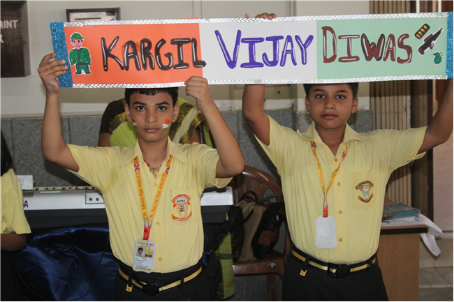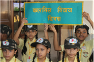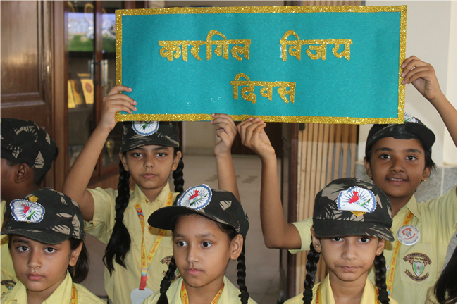 Students of Std.1 to 5 celebrated Kargil Diwas in the school during the morning assembly. Children dressed up like the Indian Army, with toy guns and banners. The assembly was full of energy, the cry of Jai Hind was in the air. Children paid tribute to the Martyrs of Kargil was. Children sang a group song and conducted a short quiz.