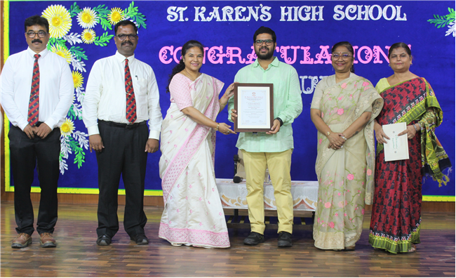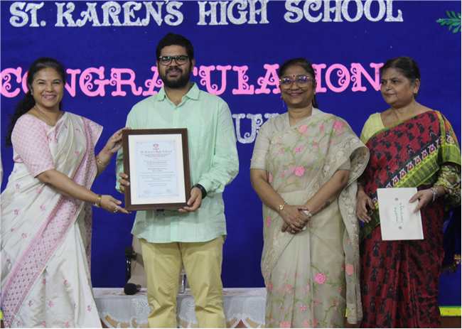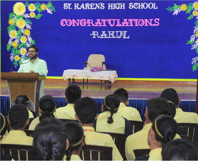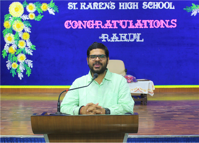 Neale Donald Walsch has said, “Life begins at the end of our comfort zone.” The auditorium of St. Karen's High School reverberated with the quote as Mr. Rahul Srivastava, ‘a proud alumnus of St. Karen's High School 2009 batch’ an IAS officer securing All India Rank 10 in Civil Services in the year 2022 was felicitated by the School Management, Principal, and Vice Principal. He had an interactive session with the students of Class 10, 11 and 12.