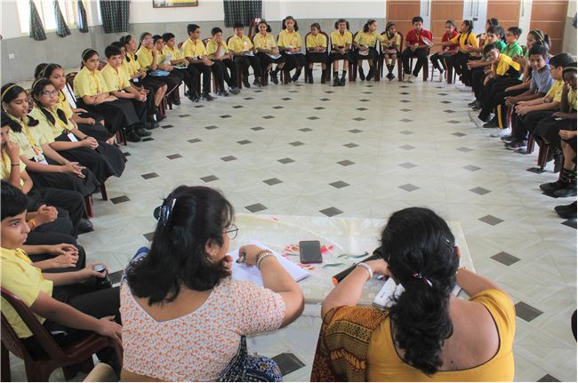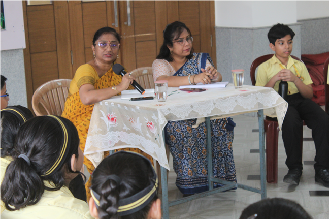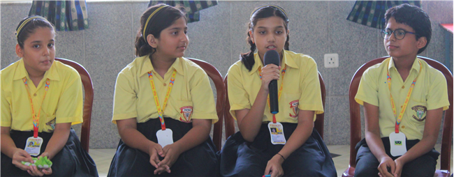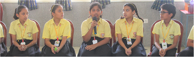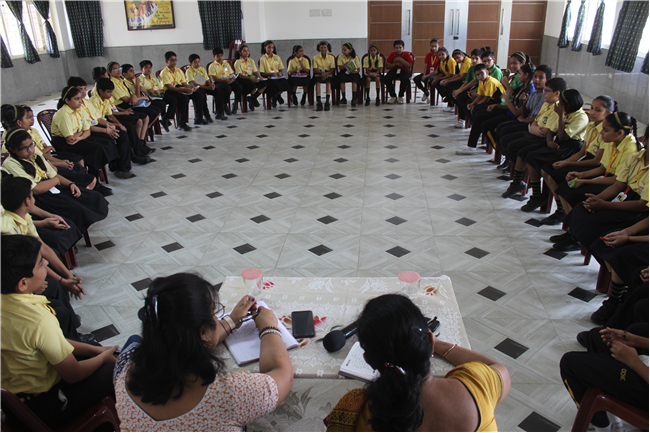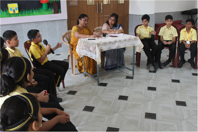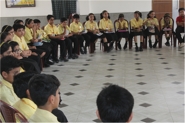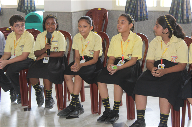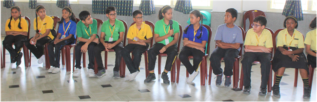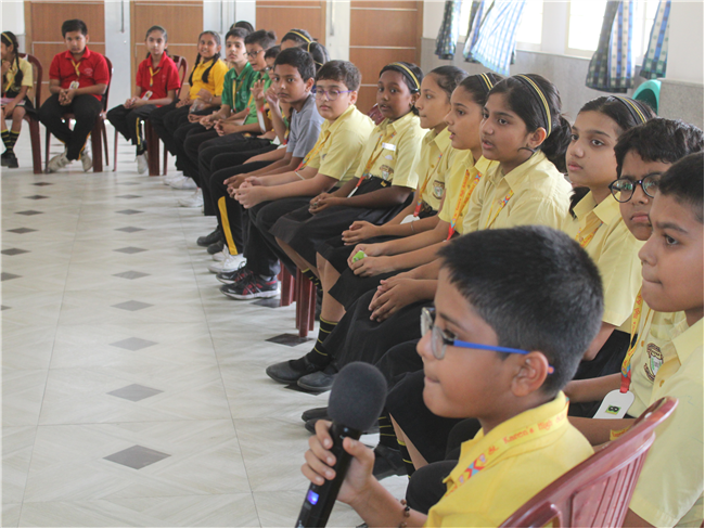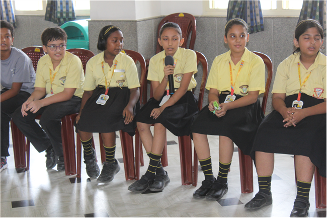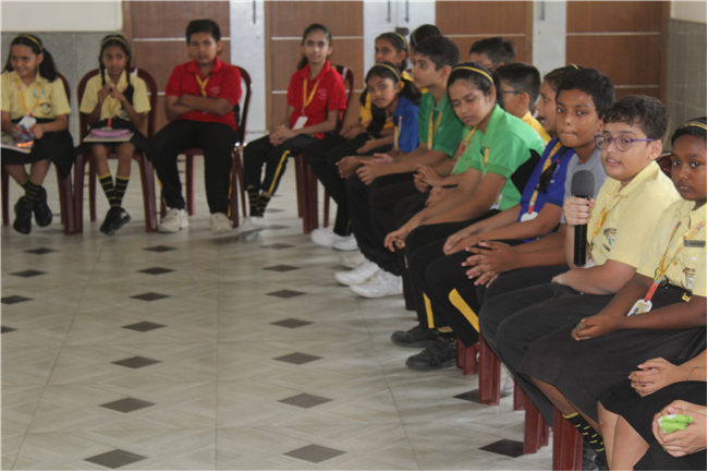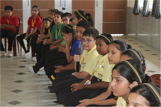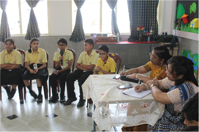 A students forum was conducted for std.5 students on 24th July 2023, where students expressed their ideas on the different aspects of school life.During the event, the students eloquently discussed topics such as discipline, cleanliness, teaching methods, and co-curricular activities. Additionally, they also candidly talked about the positive and negative behaviors displayed by both teachers and fellow students.The platform served as a fair and supportive space, allowing the children to share their diverse ideas, opinions, and personal encounters. They enthusiastically shared crucial observations with the school's Principal and Primary Co-ordinator, enabling them to gain valuable insights directly from the students themselves. It proved to be an insightful gathering that fostered open communication and understanding between the school's administration and the young learners.