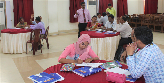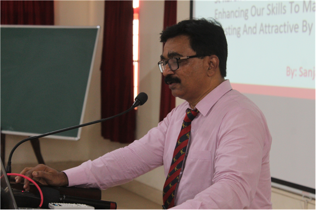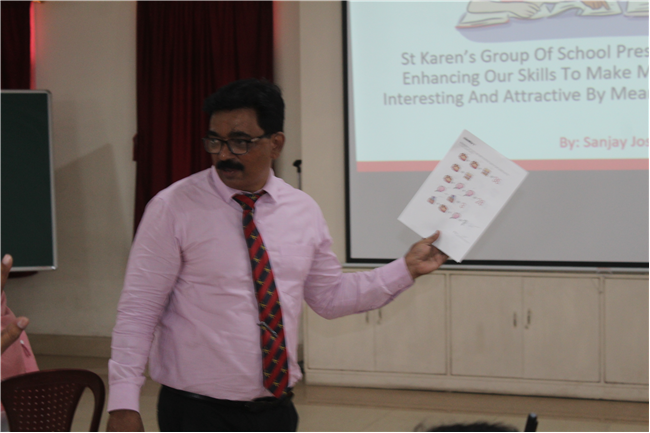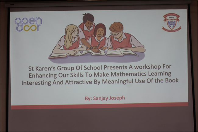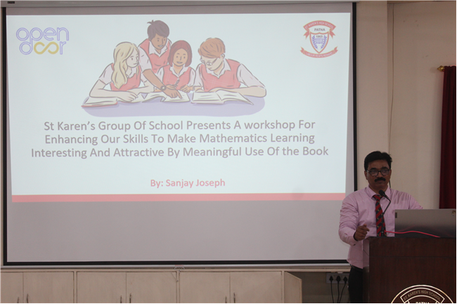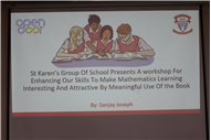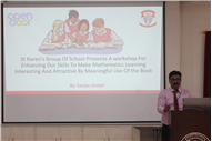 Description: St Karen's High School conducted a workshop for mathematics teachers of std.6 and std.7 of St. Karen's Group of Schools. The workshop aimed at enhancing skills of participants to make mathematics teaching- learning more interactive and engaging. The workshop highlighted the importance of allowing students to critically think and use their thinking abilities to work out solutions of questions of mathematics. Workshop was conducted by Vice-Principal, Sanjay Joseph.