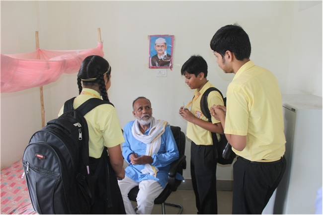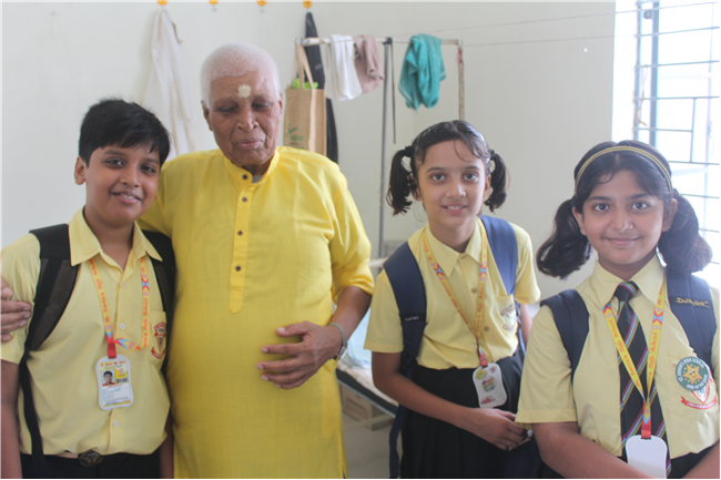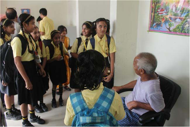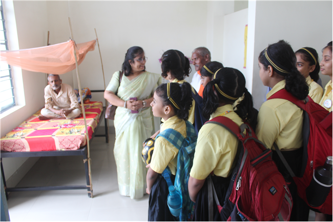 30 Students of Std.2 to Std. 6 visited an old age home ‘SAHARA' run by Helpage India on 10th August 2023. The children met the old people staying over there. The children asked them about their journey of life. The senior citizens shared their stories with the children, which was a good experience. Children presented a short program which had music, poems and dances. Our school donated soaps, toothpaste, sattu, biscuits and fruits. The main aim/purpose of the visit was to show the children the real life situation of people.