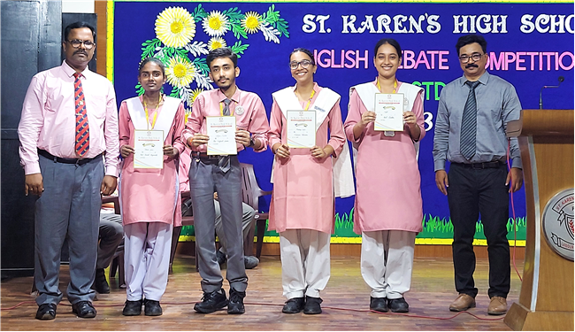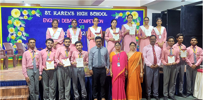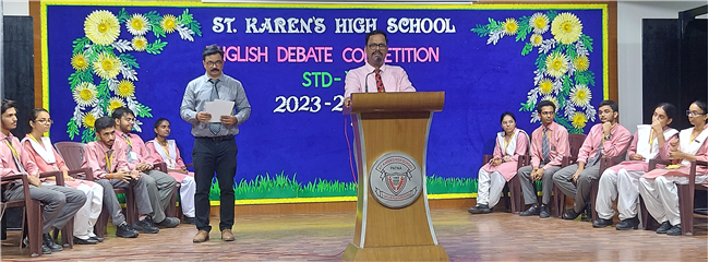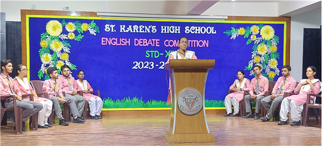 Description: St. Karen's High School hosted a debate competition on August 8, 2023, exploring the topic - 'Community service is a better punishment than prison for non-violent crimes.' The event showcased students' debating skills and critical thinking. Students of class XII presented their arguments for and against the topic. The proposition argued that community service promotes rehabilitation and reintegration, while the opposition emphasized the deterrence and structured rehabilitation aspects of prison. The participants were evaluated on their content, delivery, research, and rebuttal skills. The debate competition encouraged thoughtful discourse on the merits of community service and prison for non-violent crimes. It demonstrated the school's commitment to fostering well-rounded individuals.
