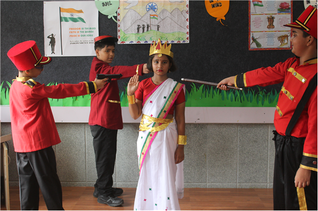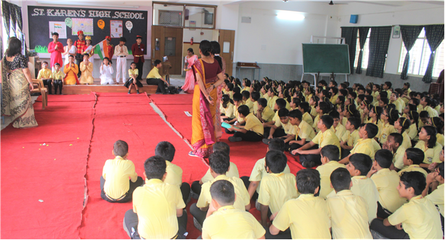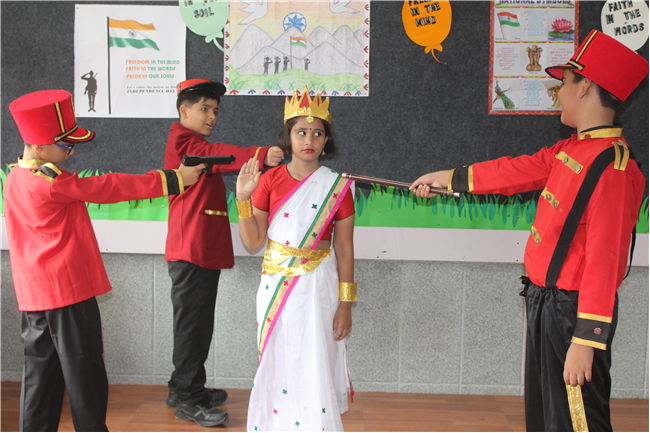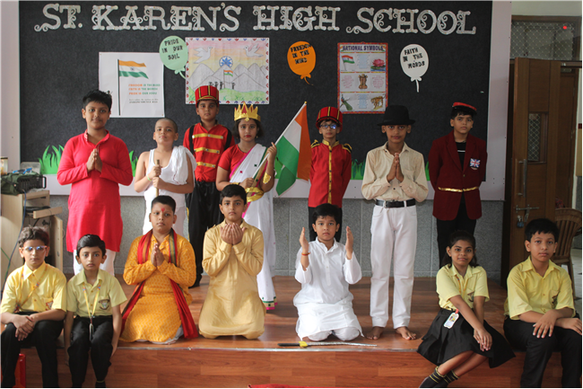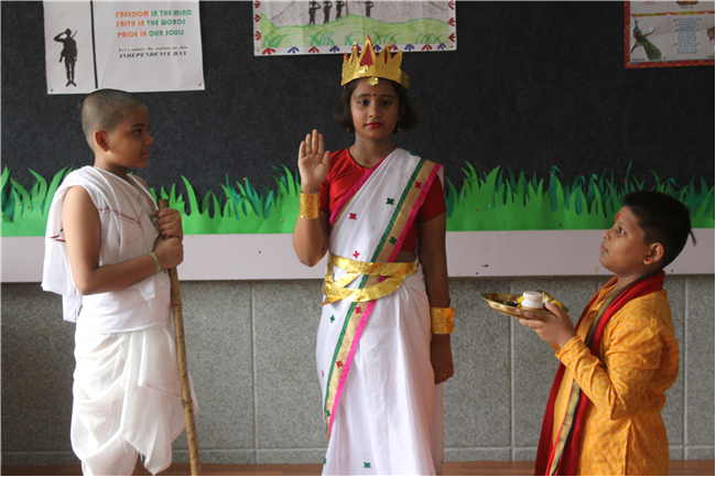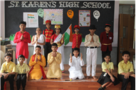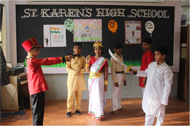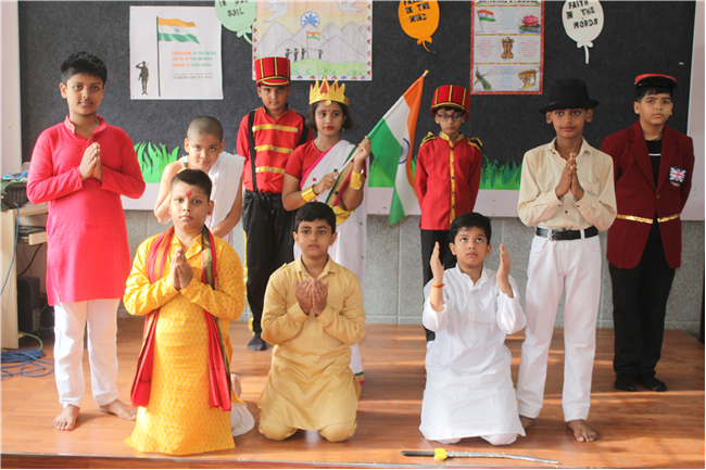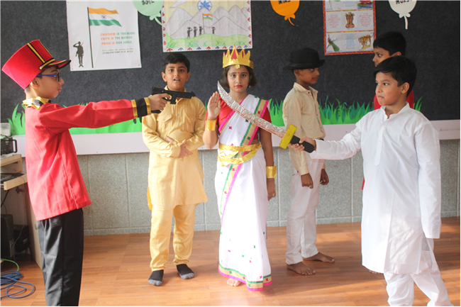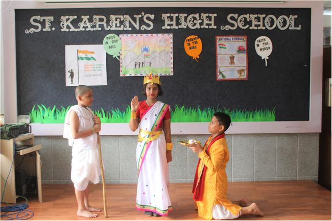 The students of standard 3 put on a remarkable musical drama, depicting India's freedom struggle. Their performance highlighted how unity among people of different religions and castes can transform adverse conditions.