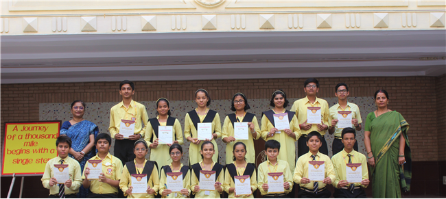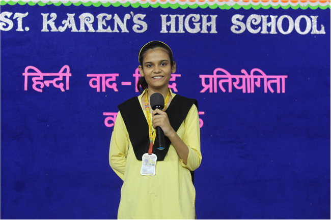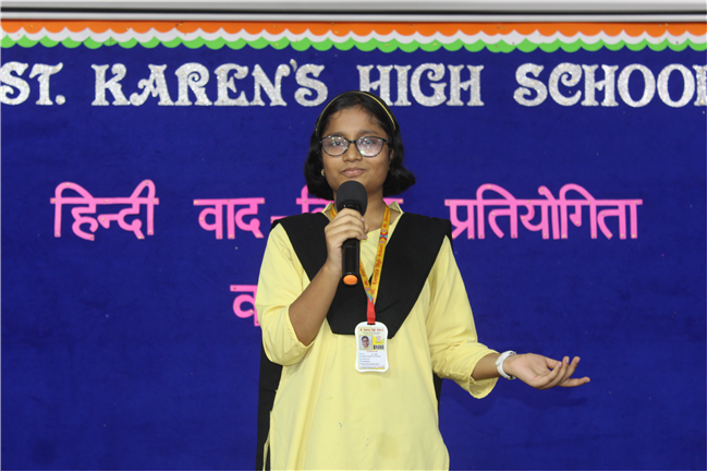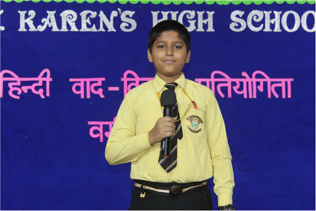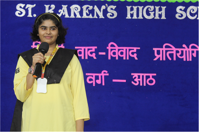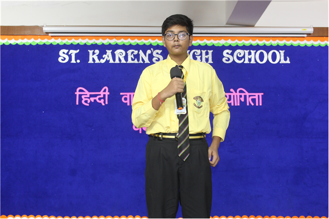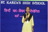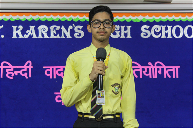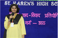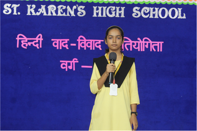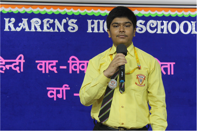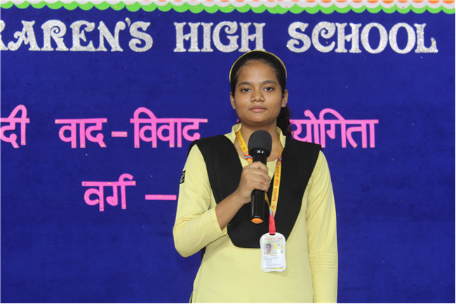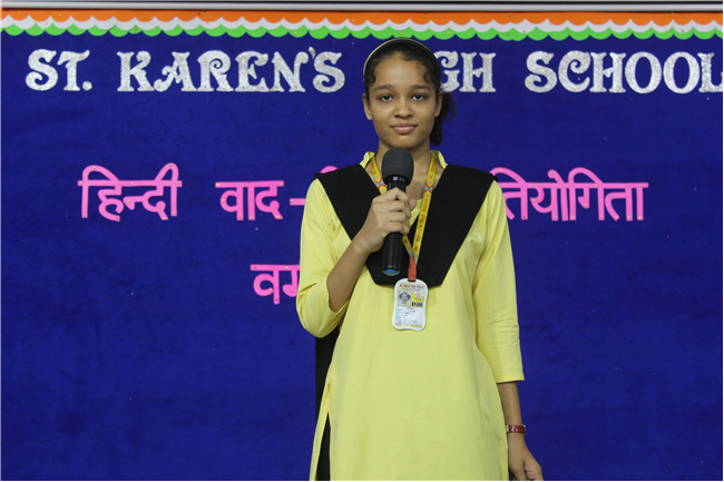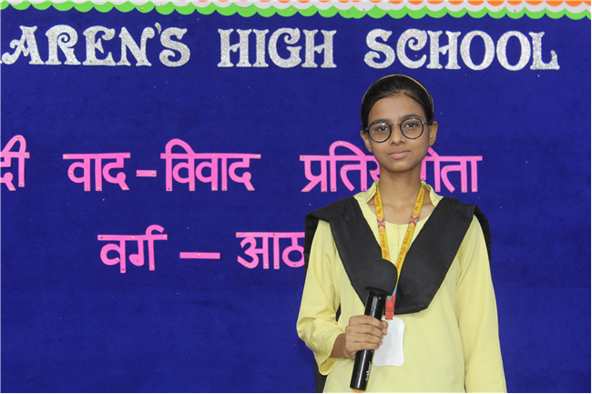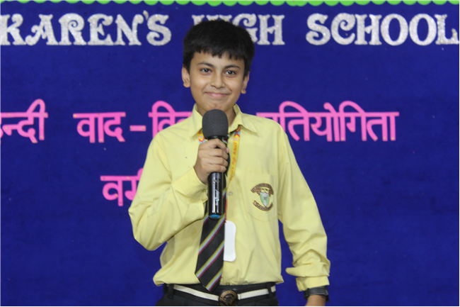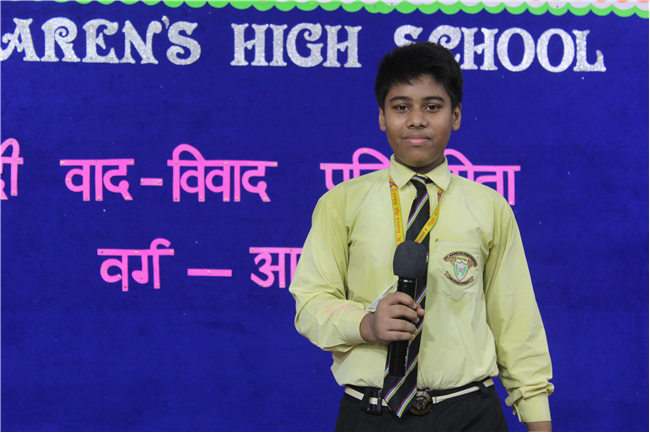 A ‘Hindi Debate Competition’ was organized for class-8th students on 18th August 2023 in Pamela Hall. The topic of debate was ‘Kya AI (Kritrim Buddhimatta) Manav Ashtitva Ke Liye Khatra Hai?’ The anchors of the debate were ‘Seemon Kumari’ from 8-H and ‘Harshit Kumar’, from 8-I . The performance was highly commendable. Tanvi Singh from (8-A) bagged first prize, Ayushi Aryan from (8-B) secured the second position and Trishna from (8-G) secured the third position.