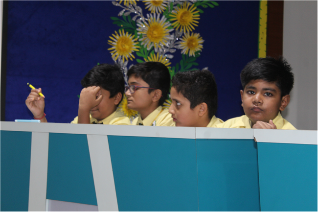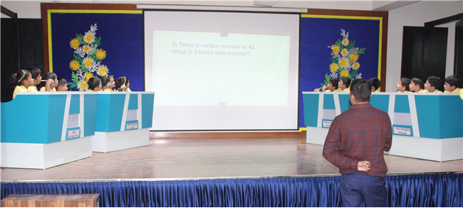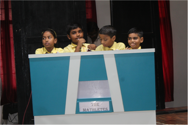 A maths quiz competition was conducted for the students of std.4 on 25th of August 2023.The main aim was to develop an interest towards quiz and shed away fear of Maths. The children of std.4 were very much excited and exhibited their talent by their prompt response. The whole quiz contest had 3 rounds: