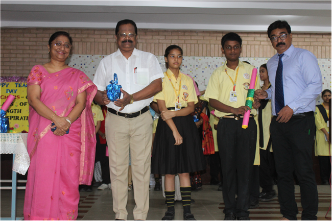 A special assembly was held on 4th September, 2023 on the occasion of Teacher’s Day in which the result of the Bulletin Board Competition was announced. The winners from each class were felicitated by Principal ma’am & Vice-Principal sir. The winners are:- class (1-B), (2-E), (3-C), (4-C), (5-B), (6-G), (7-F), (8-E), (9-E) and (10-G).