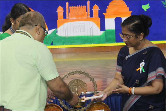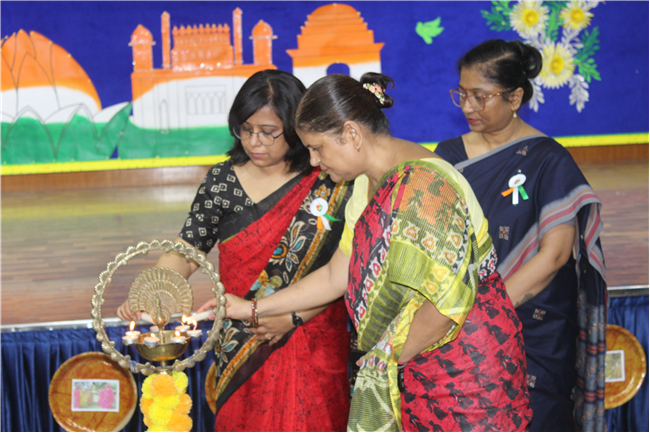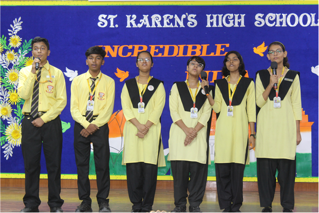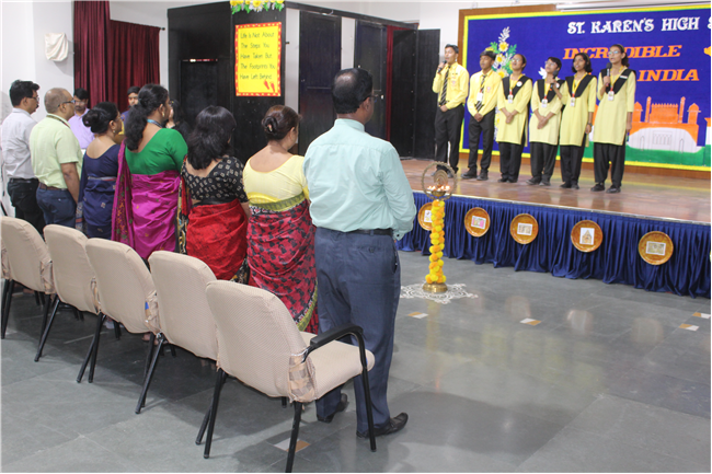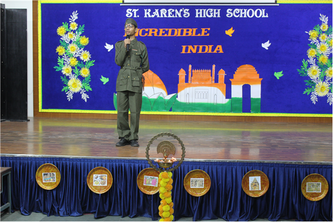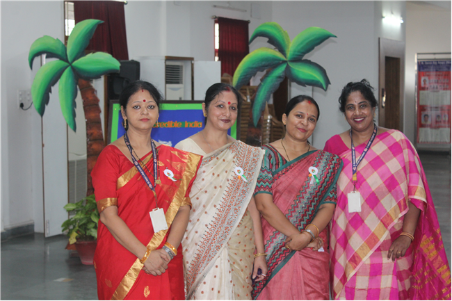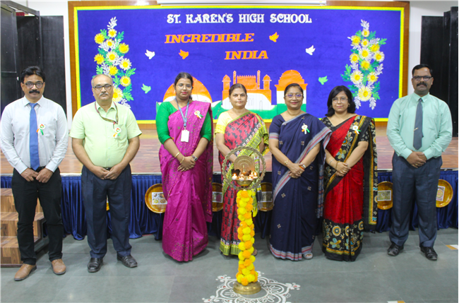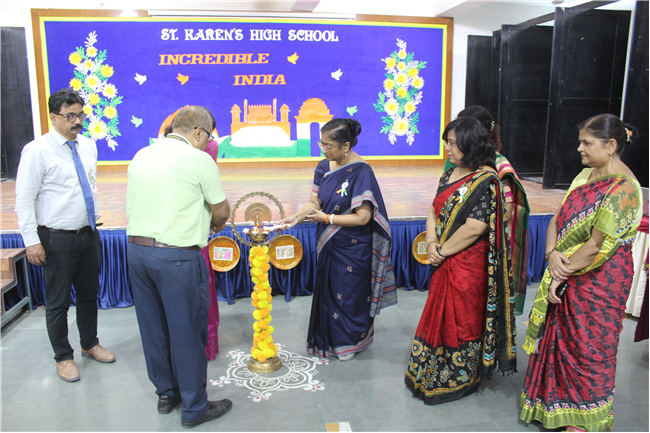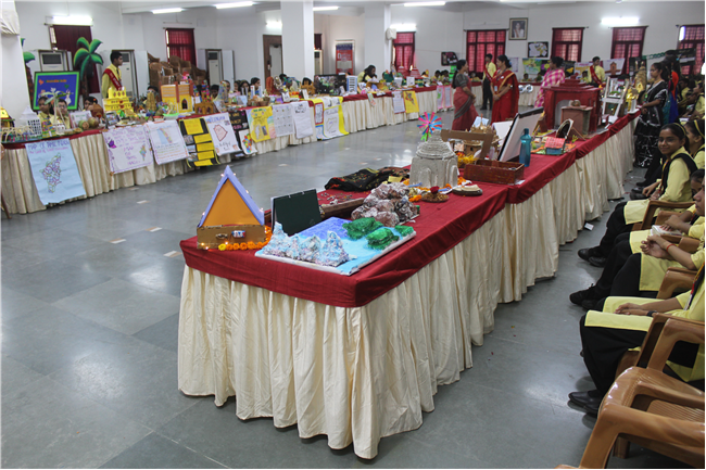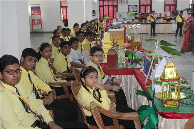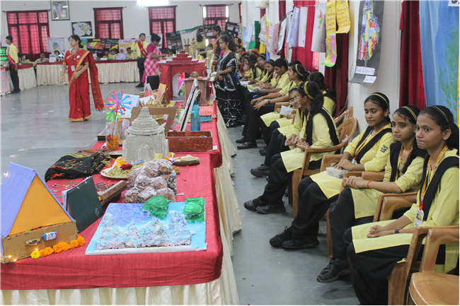 The Department of Social Science organized an exhibition on October 10, 2023, featuring the active participation of students from Classes 6 to 9. The event commenced with the pinning of badges on the esteemed guests and the ceremonial lighting of the lamp, followed by a captivating digital presentation of the theme. The students skillfully presented the diverse cultures of different Indian states through models of monuments, cuisine, traditional attire, and more. These state-wise presentations beautifully showcased the unique and vibrant colors of each region. The exhibition transformed Pamela Hall into a microcosm of India, making it a cultural extravaganza worth celebrating.
