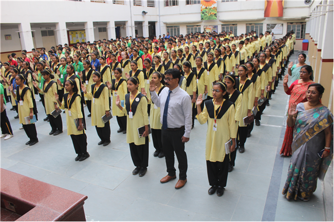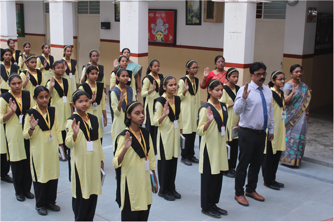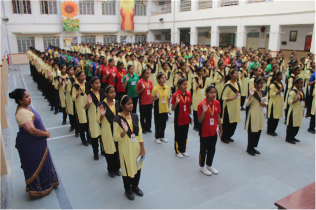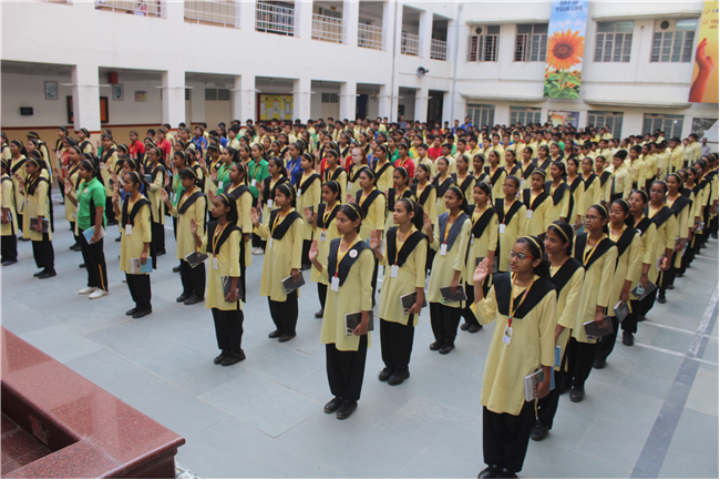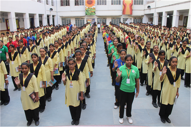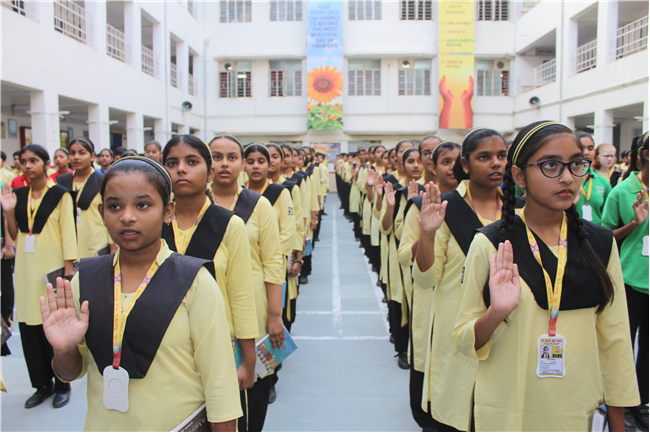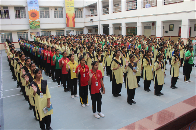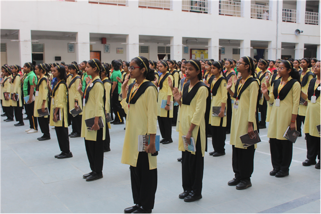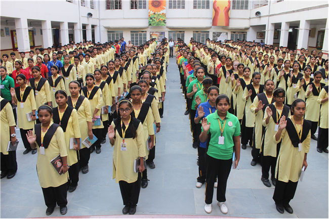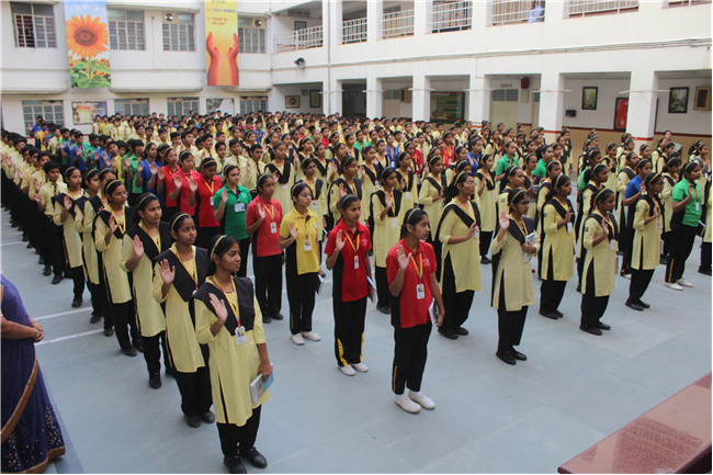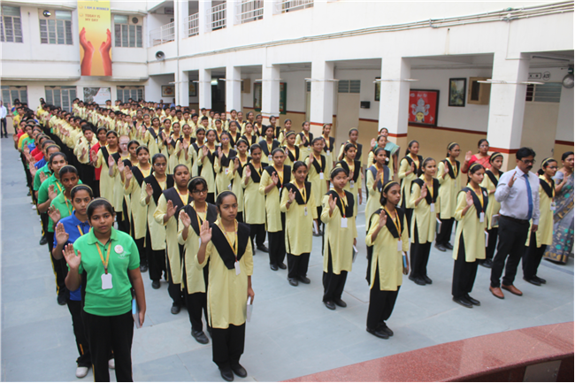 On 30th of September, all the students and staff of St. Karen’s High School took a pledge to maintain cleanliness and dedicate their services for the welfare of the country. They also took pledge to follow Gandhi’s values and teaching. This would be the best way to give tribute to the father of the nation on his 154th birth anniversary. On this occasion students from std.1 to 12 participated in various activities like painting, nukkad natak etc.