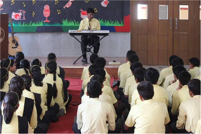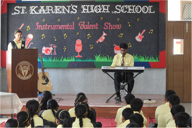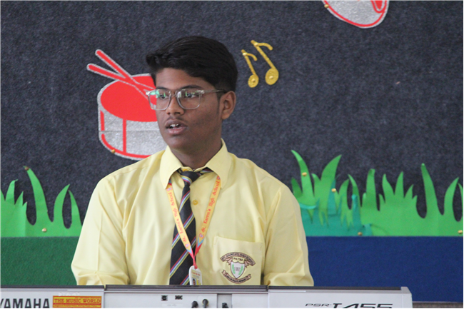 The students of std.6 to 10 showcased their talent in playing instruments like guitar and keyboard. They presented melodious numbers, which were superfluous, full of rhythm, and pleasing to the ears. The program was divided into two categories A and B. For std. 9 and 10 in the first one and 6, 7 and 8 in category B.