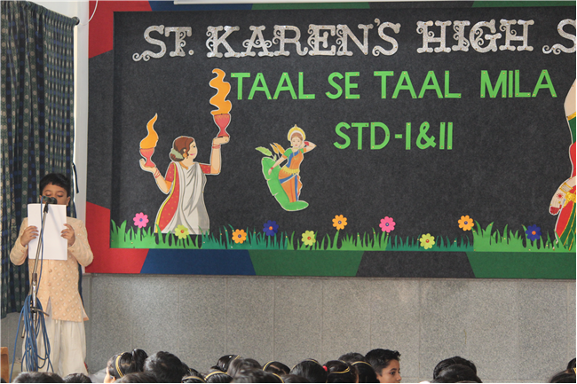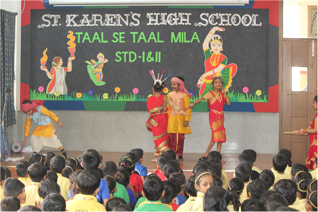 Folk dance competition was organized in St. Karen's High school on 8th November 2023 by students of standards 1 and 2. The stage came alive when the students of different sections staged spectacular dances in the competition. They mesmerized the audience with the performances based on the team ‘Tal Se Tal Mila’. The attractive costumes, fluid dance movements, and fascinating props made it tough for the judges to decide the winners. Our senior coordinator Subhadra Singh Ma'am and primary coordinator Sumita Guha Roy Ma'am appreciated our young dancers and motivated others to take part in such competitions. The program was concluded with a vote of thanks.