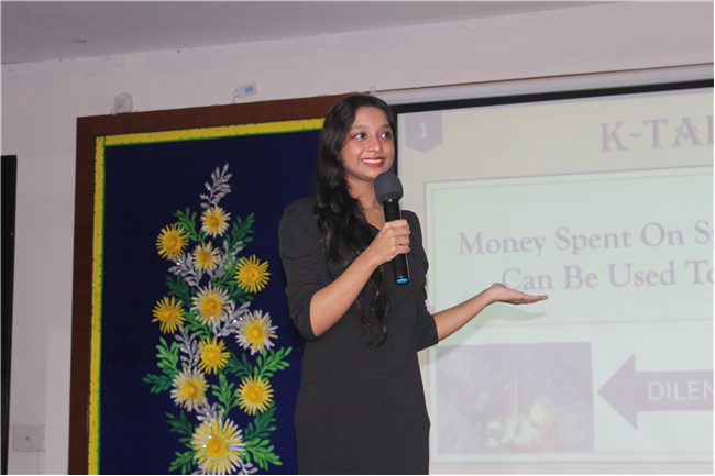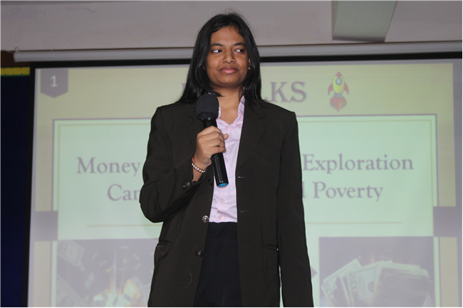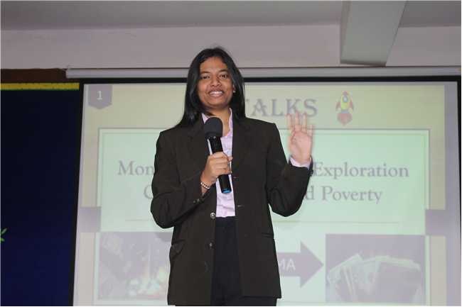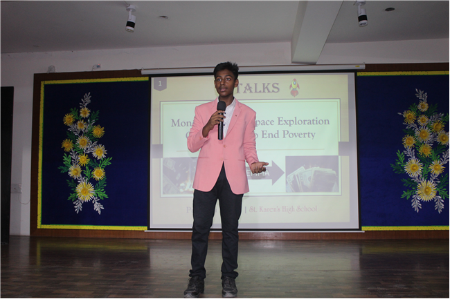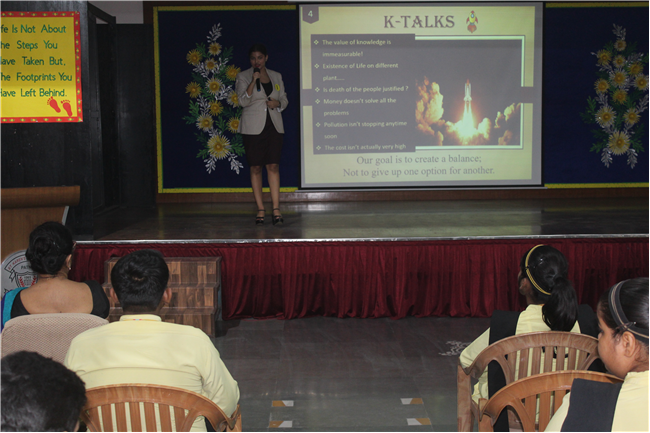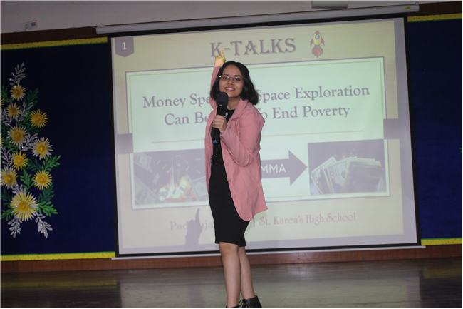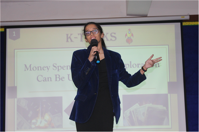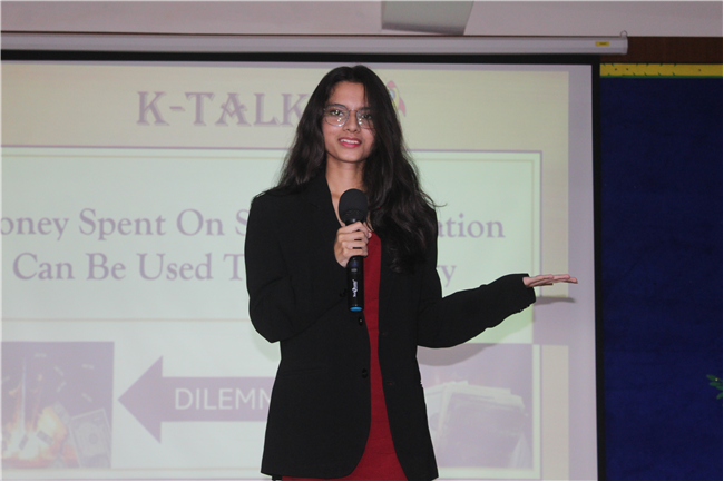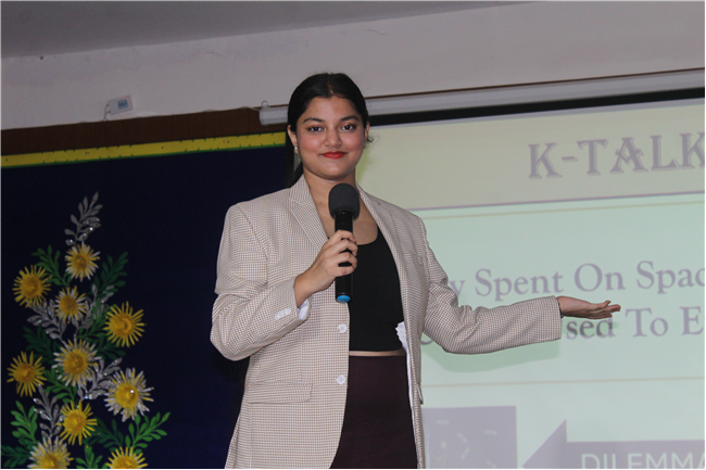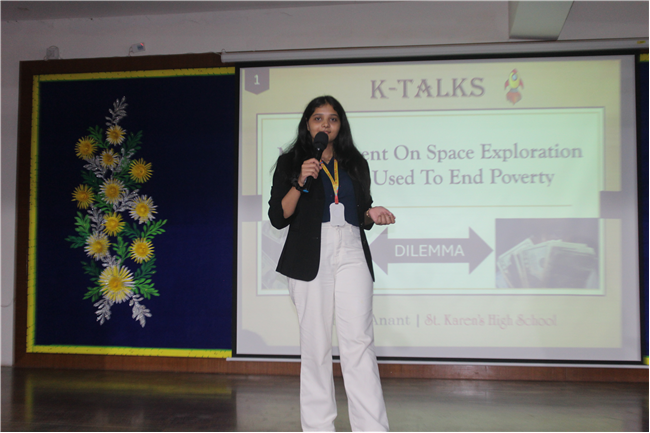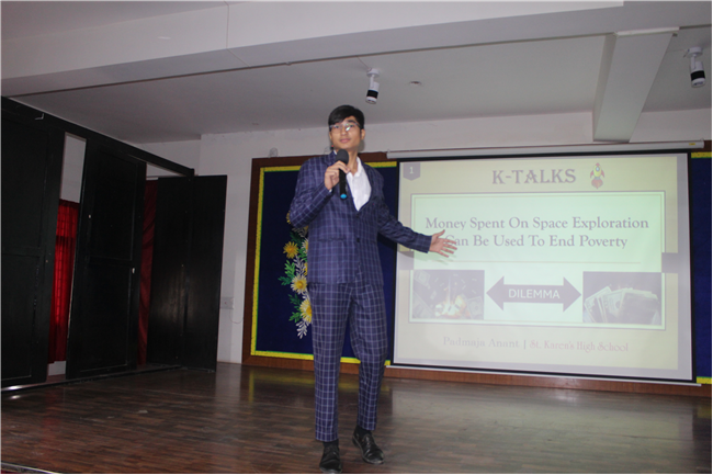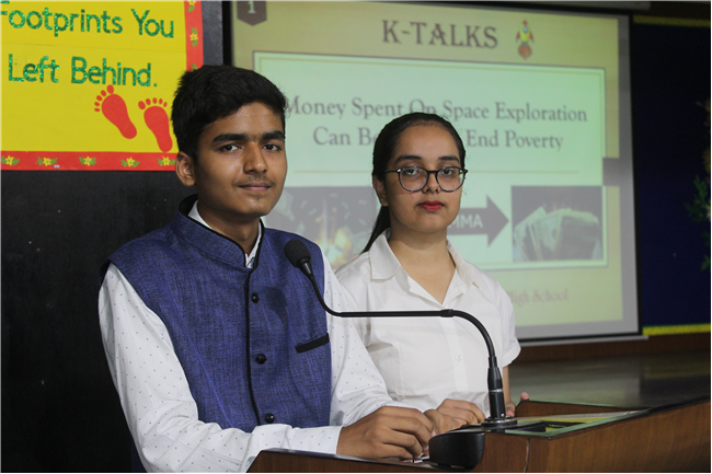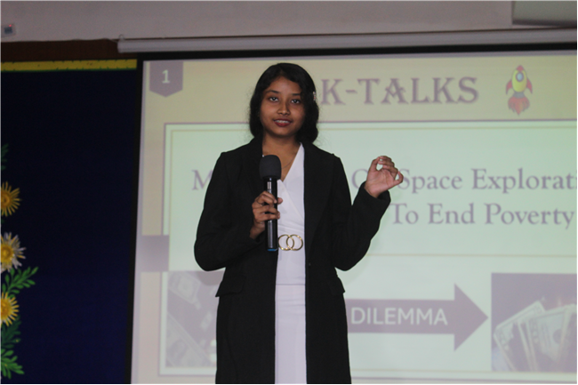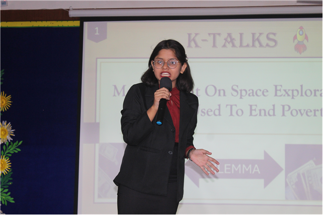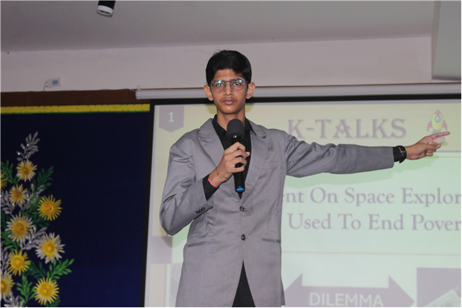 K-talks was organised for the 10th-grade students. The topic for the compe4tition was, "Redirecting Funds from Space Exploration to Alleviate Earthly Poverty." Thirteen students enthusiastically took part in the competition. The competition fostered insightful discussions and highlighted the students' ability to critically analyze and communicate their ideas. The participants were evaluated across various criteria, including Presentation Skills, Organization of Ideas, Expression, Content, and the effective use of PowerPoint Presentations.