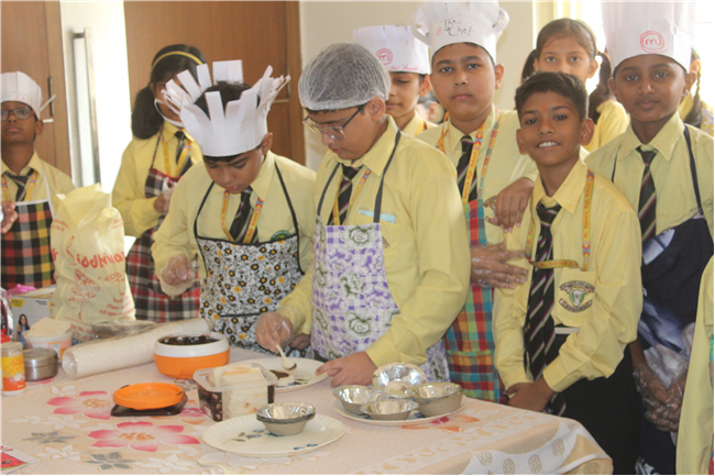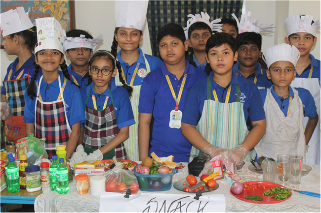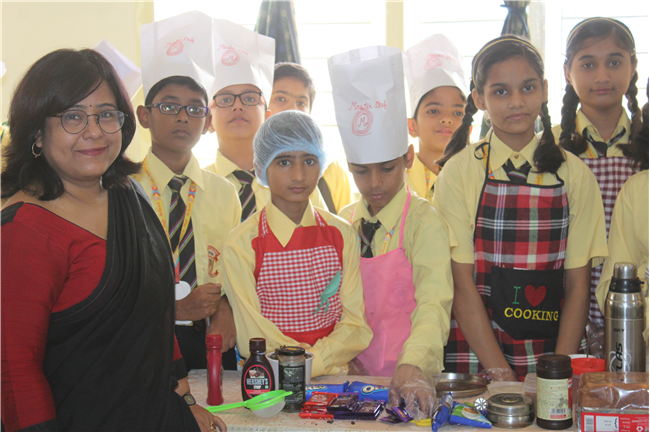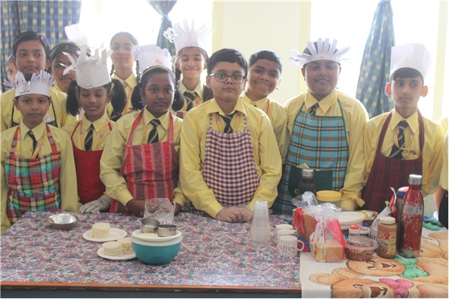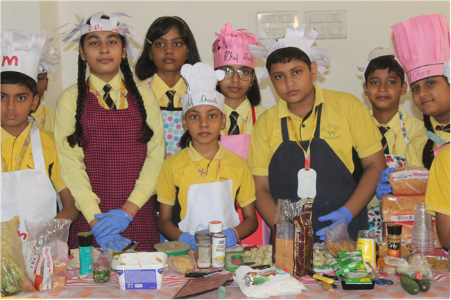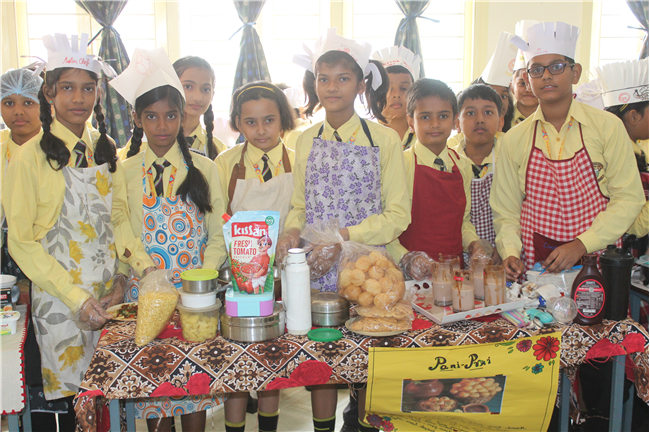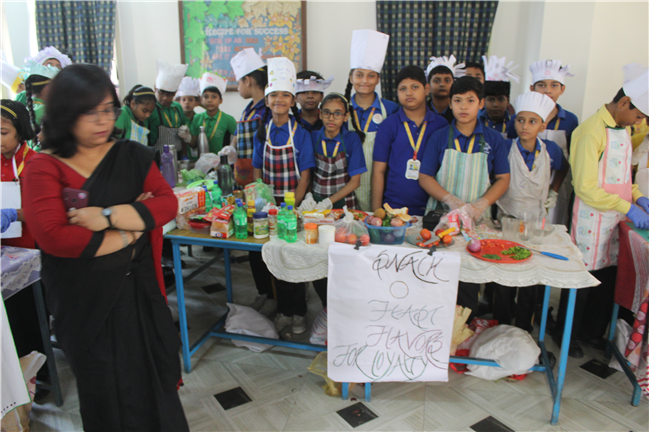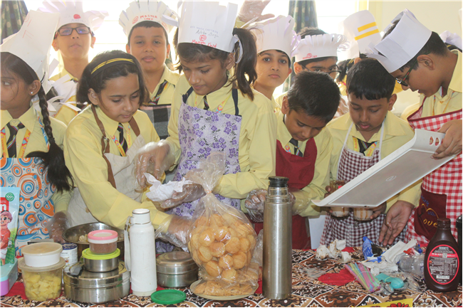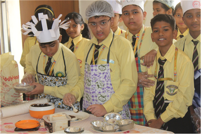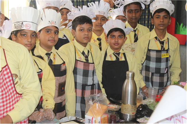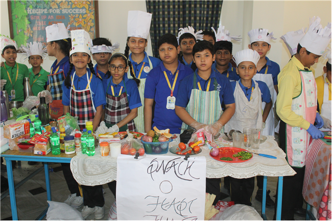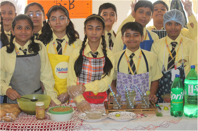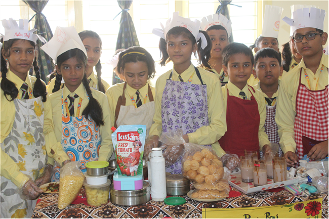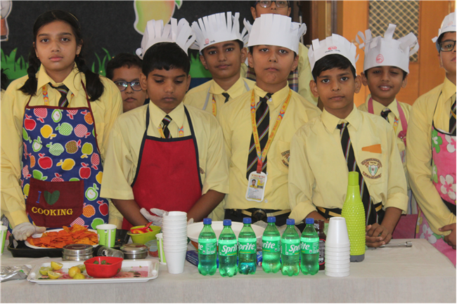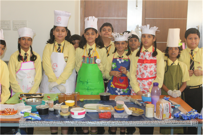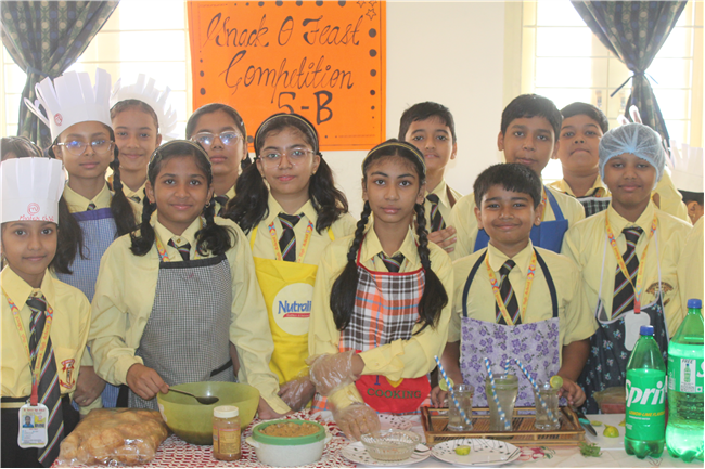 The students of std.5 donned their ‘Chef Caps’ to exhibit their culinary skills in Snack-O-Feast Competition held on 6th November, 2023 in the Primary Hall. Children participated with full Zeal and enthusiasm. Dishes were judged on taste, hygiene, discipline and presentation by esteemed judges Subhadra Ma’am, Sumita Ma’am & Sangeeta Ma’am. They interacted with budding Chefs to find out the ingredients and recipes of their dishes. This event not only provided a platform for the students to foster their creativity and culinary skills but also helped them explore their hidden talents. The special guests of the programme (competition) were Shefali Ma’am, Seema Ma’am, and Sanjay Sir. They also encouraged and appreciated the efforts of the students.
