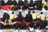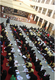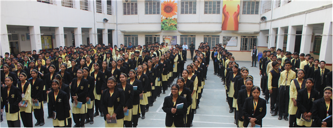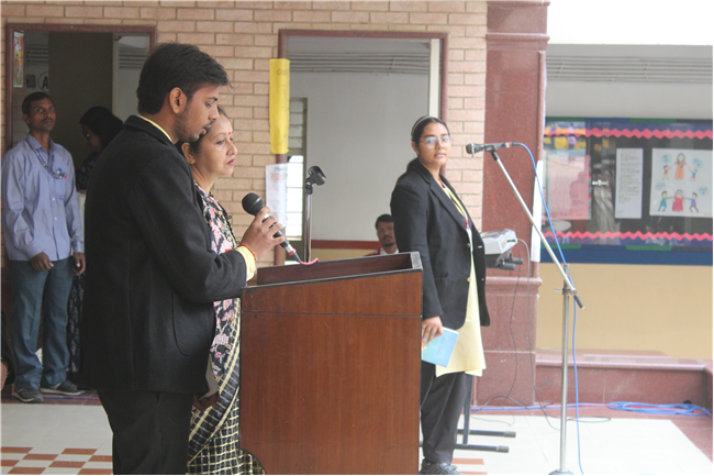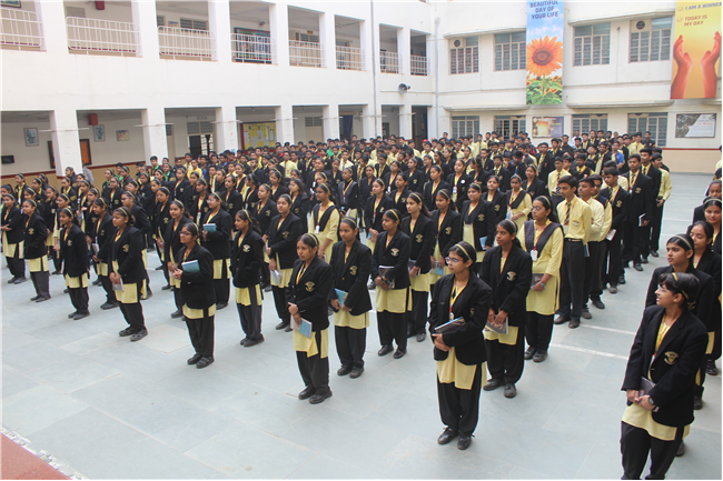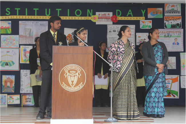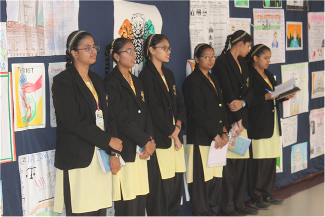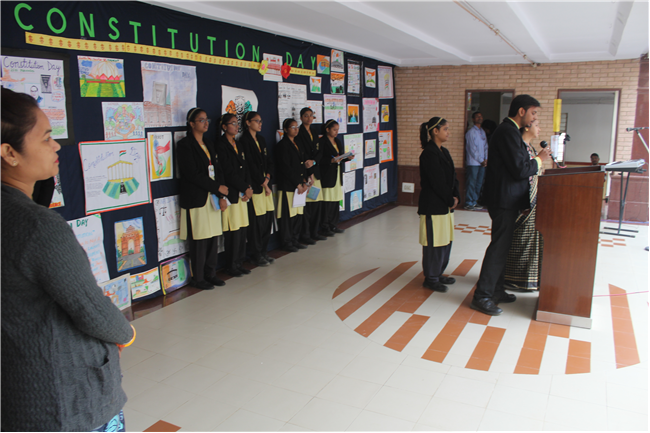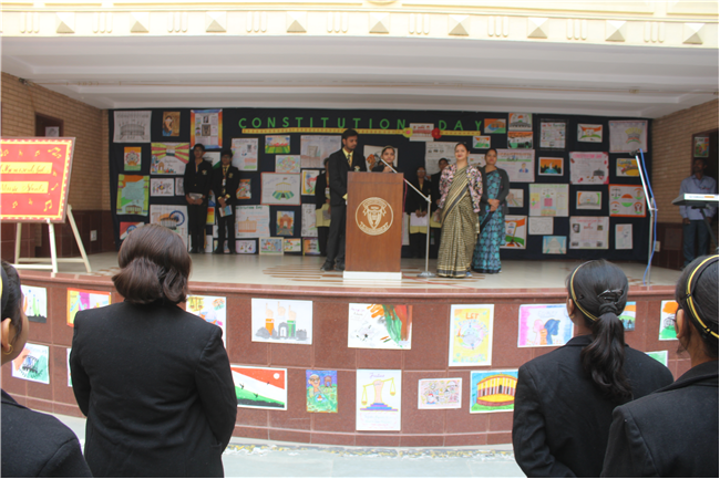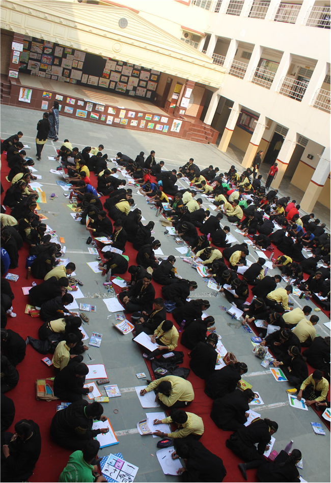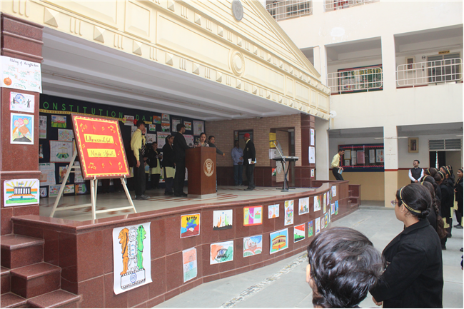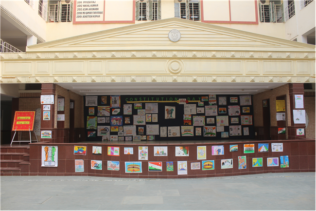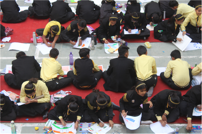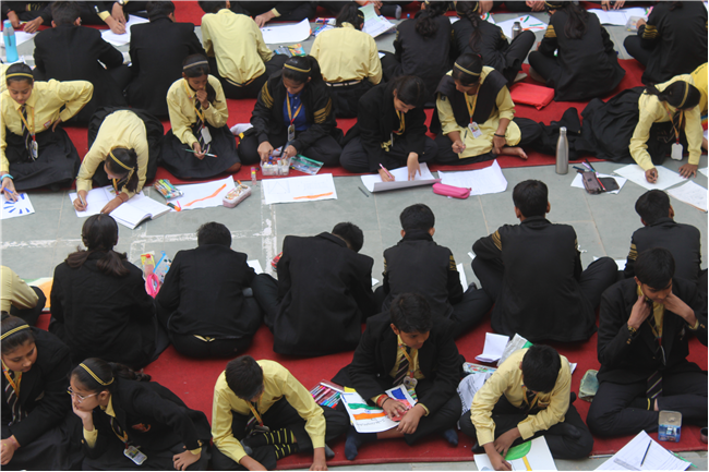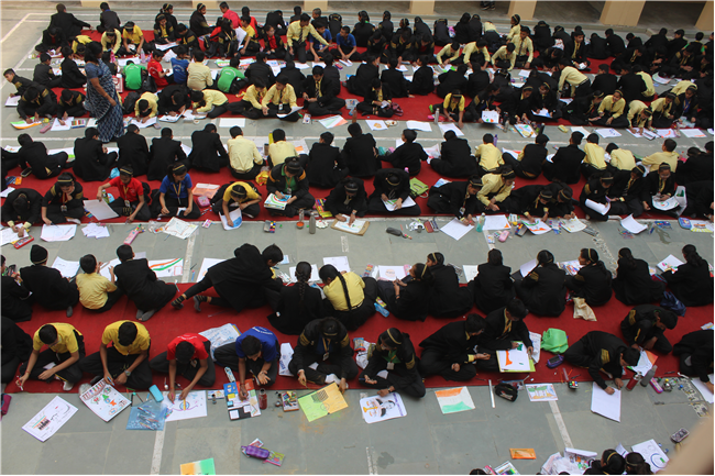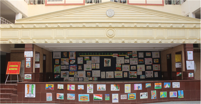 Students from grades 6 to 8 showcased their creativity in the Constitution Day painting competition. The vibrant atmosphere in the quadrangle reflected their enthusiasm.