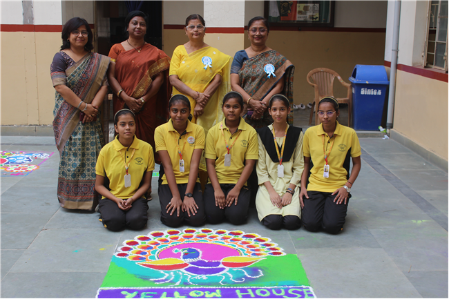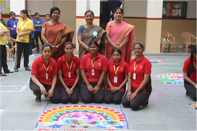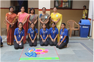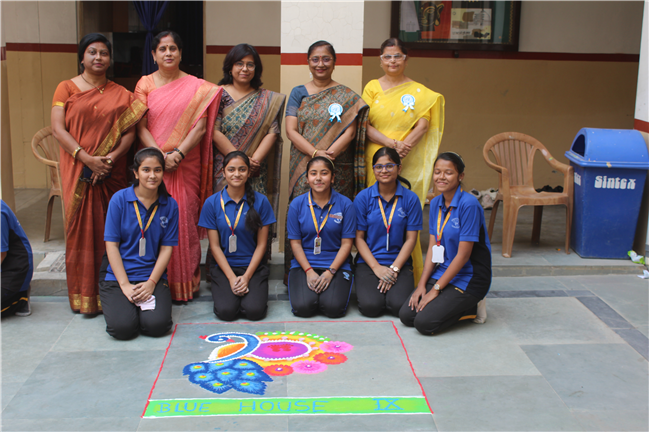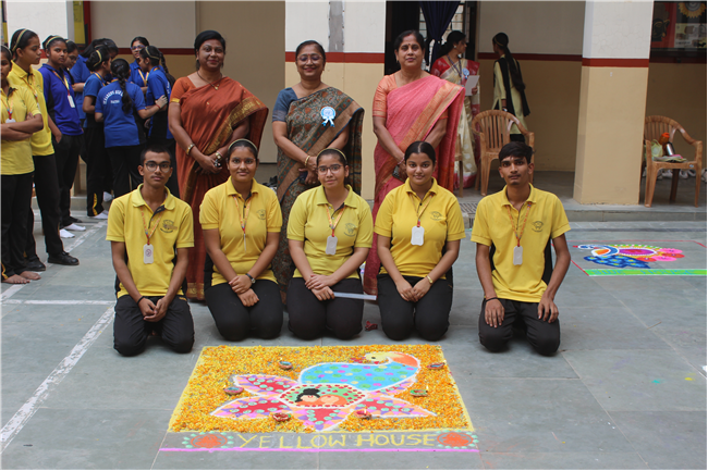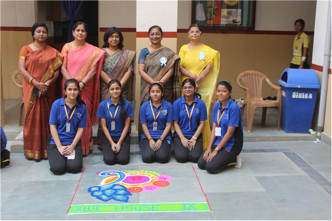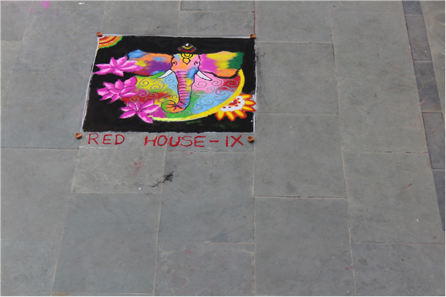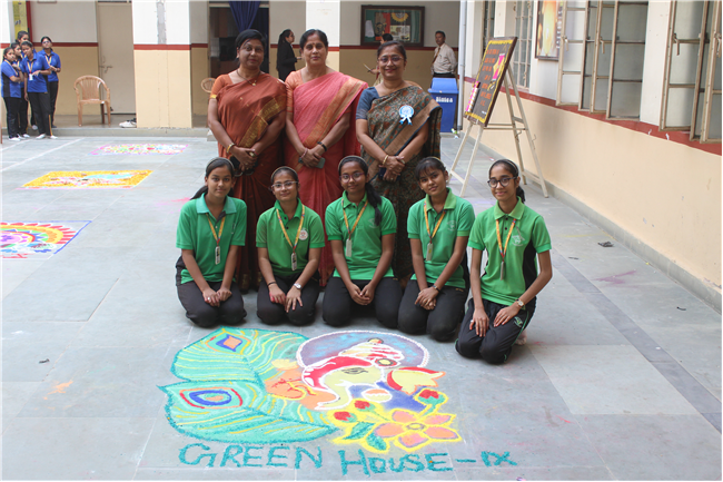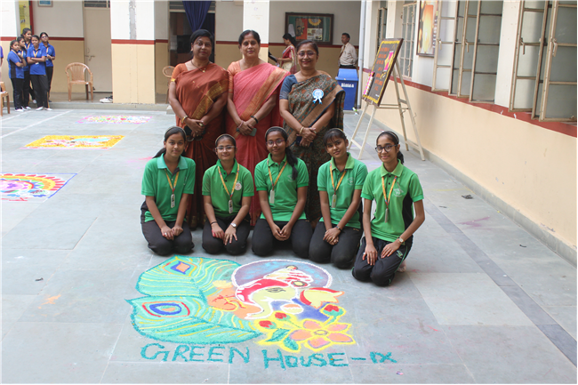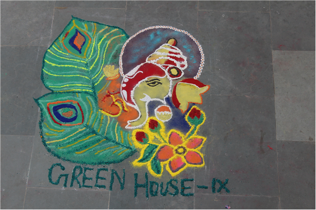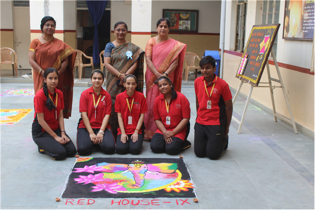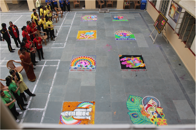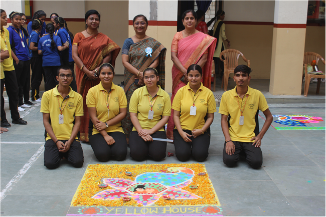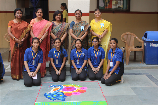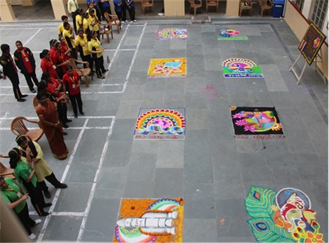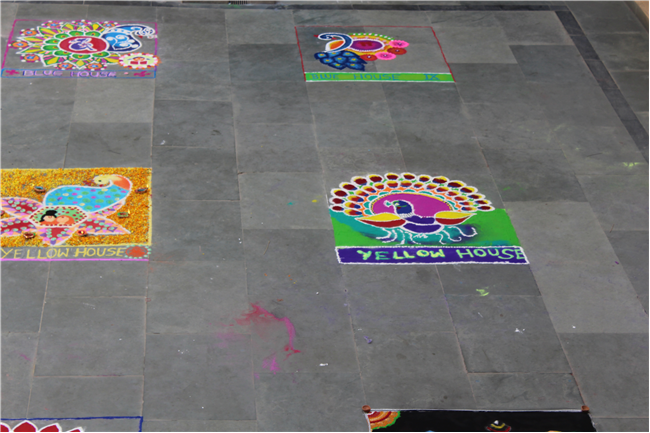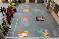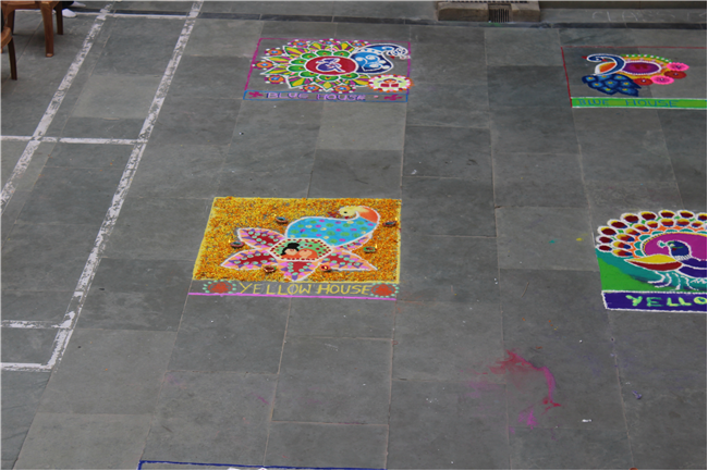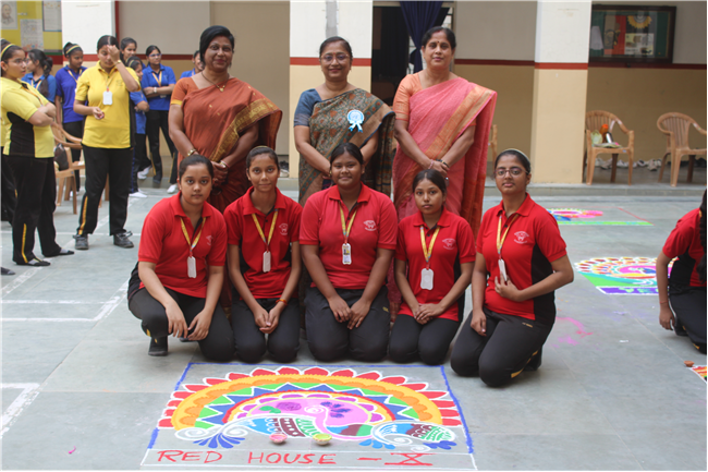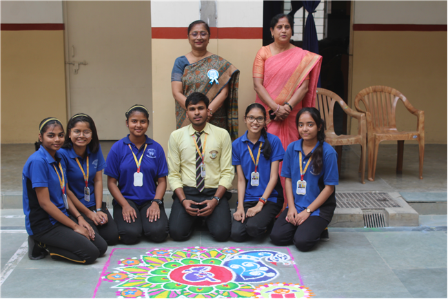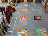 A Rangoli Making competition was held on 9th November, 2023 in the quadrangle for students of classes 9 and 10. Students actively participated in the competition & showcased their creativity. The Rangoli made by them were colorful & innovative. The Rangoli displayed manifold patterns filled with bright, pleasing colors. The students learn and practiced a traditional form of art. Principal Ma’am appreciated the students for their efforts.