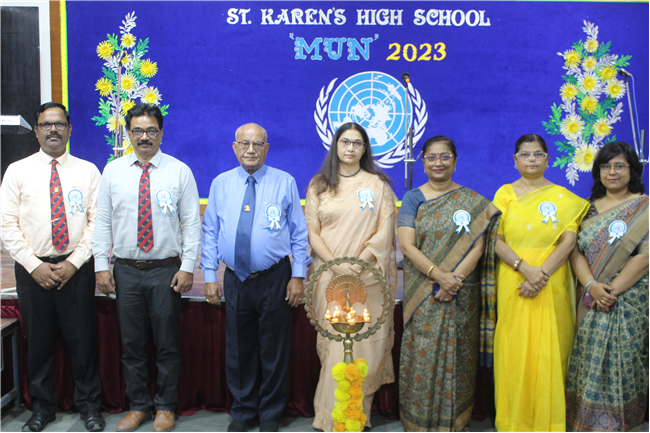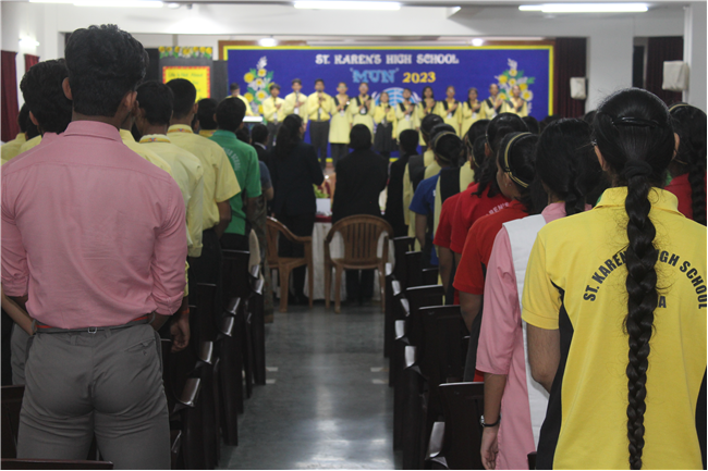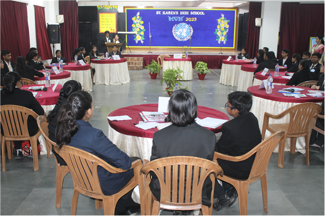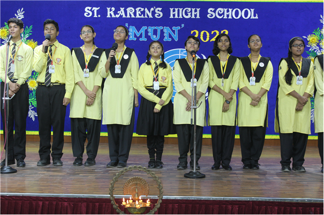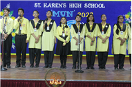 Participant of different branches of St. Karen's School representing different countries debated on topic like “Cyber-Crime and Cyber War” and “cross border terrorism”. There were a total of 9 countries who debated on topic “cyber-crime, cyber war and cyber terrorism” in the first half. Then 5 countries were selected for the second round who debated on the topic “cross border terrorism”. There were two winners INDIA (represented by St. Karen’s High School), BHUTAN (represented by St. Karen’s Secondary School) who bagged the first position.