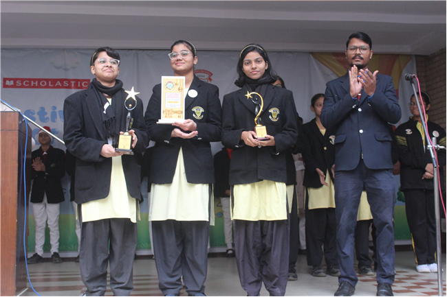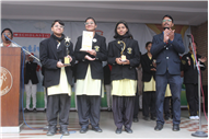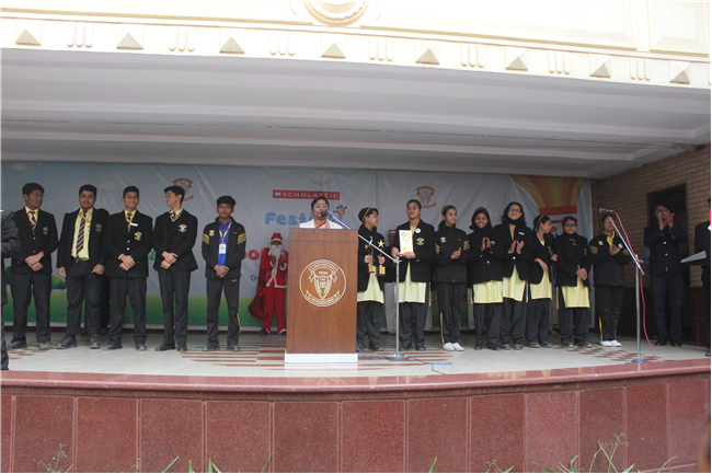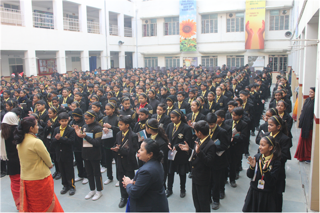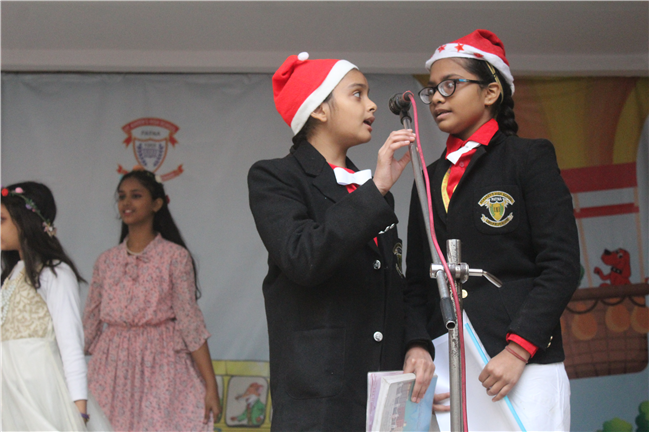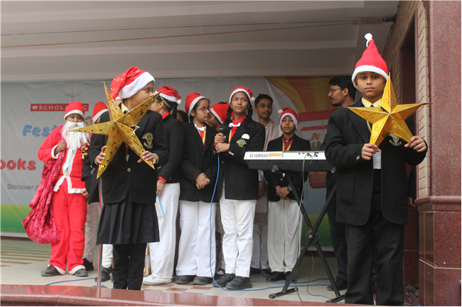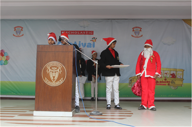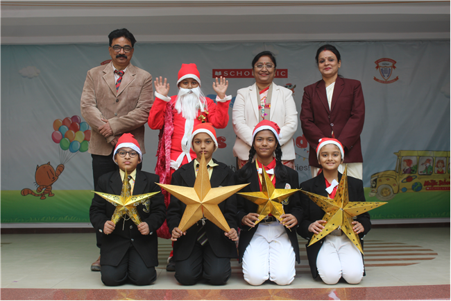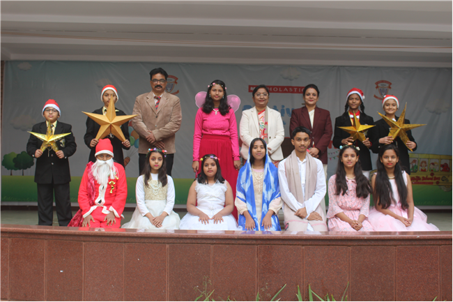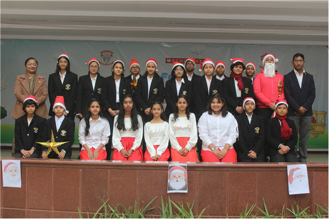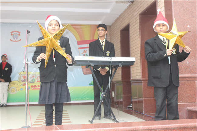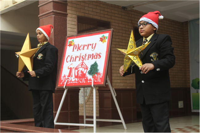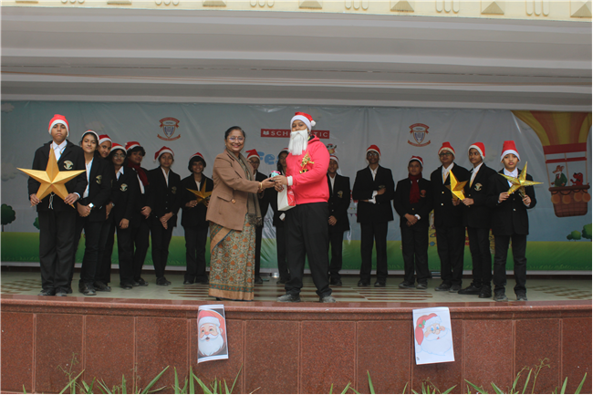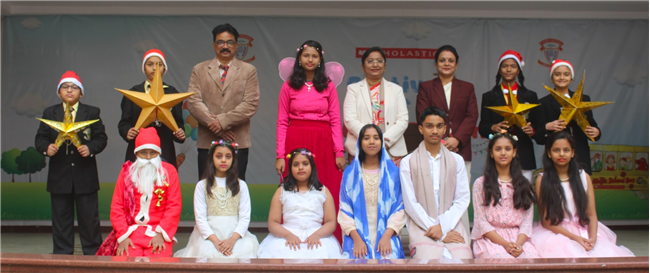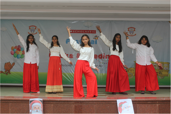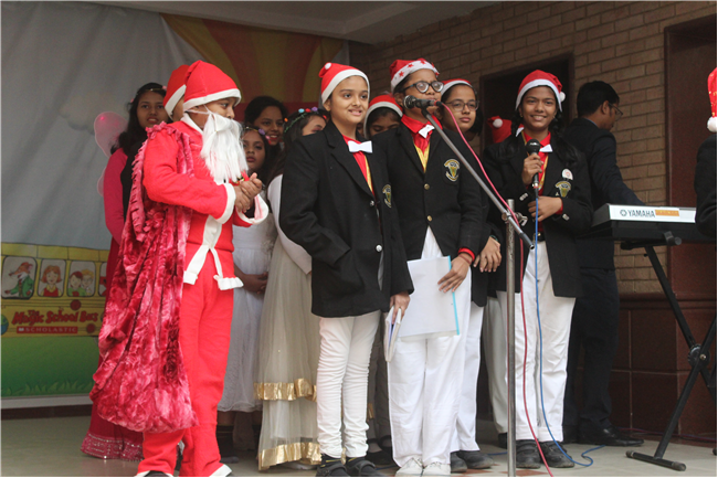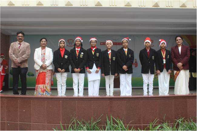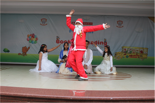 A special assembly was conducted by the students of std.6, 7, 9 and the Primary wing on 20th, 21st and 22nd December respectively to celebrate and spread the spirit of Christmas. The senior students, dressed gaily performed a skit and sang carol songs. The little ones of Primary also presented a vibrant show comprising of dances, Christmas carols and the Nativity play. At the end of the programme, Santa entered on his beautifully decked up bicycle and blessed the children. Their excitement knew no bounds as they saw Santa and received chocolates from him.