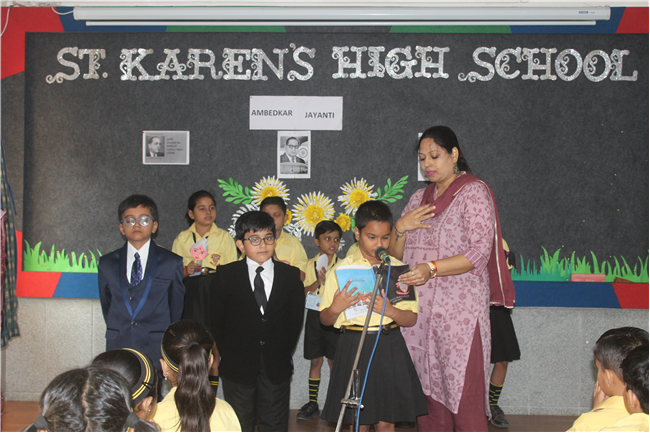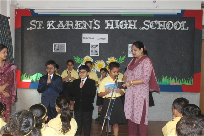A special assembly was conducted by the students today to pay homage to Dr. Bhim Rao Ambedkar. A Quiz and skit were organized to make students aware of the contribution of Dr. Ambedkar. Std.4 children celebrated Baisakhi during their assembly.