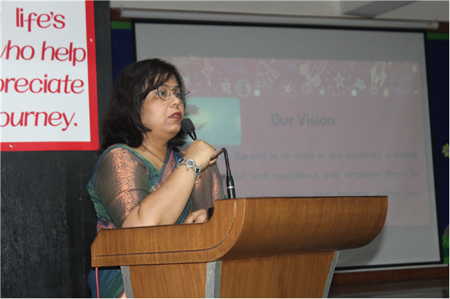 Seema Ma’am welcomed the parents and in her speech gave them the message to be good parents by setting examples for their children as their role model. Sumita Ma'am told them about rules and regulations of the school, discipline, attendance, counselling done in school and also asked for their support and co-operation. The teachers teaching in std 1& 2 were introduced to the parents. The ecare team also addressed the parents telling them how they can use the app to get the required information.