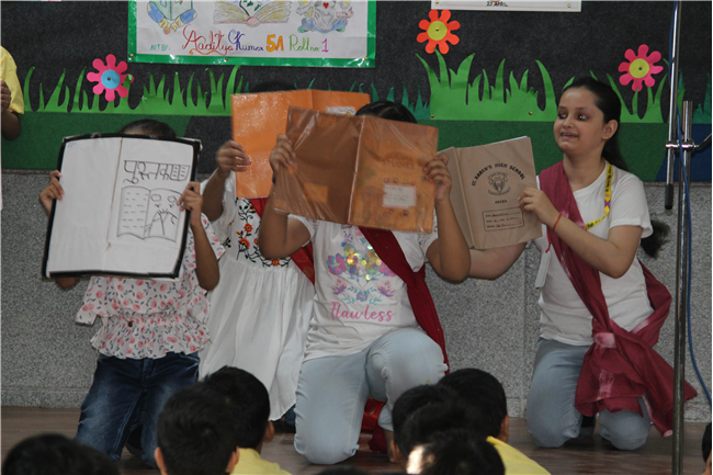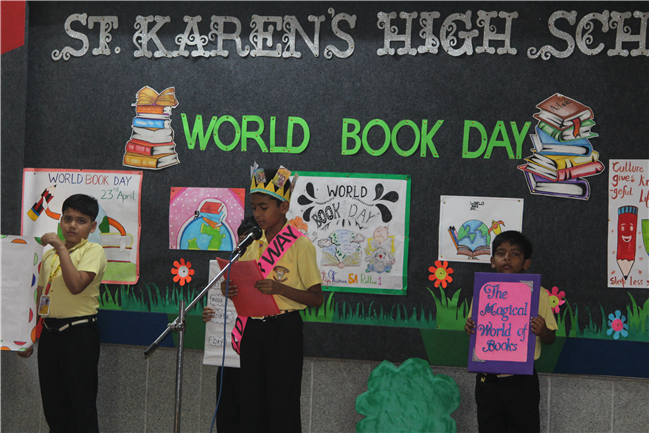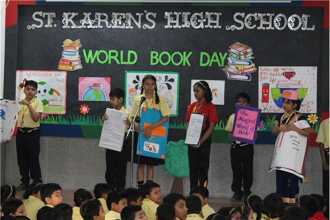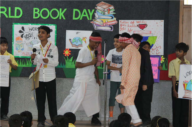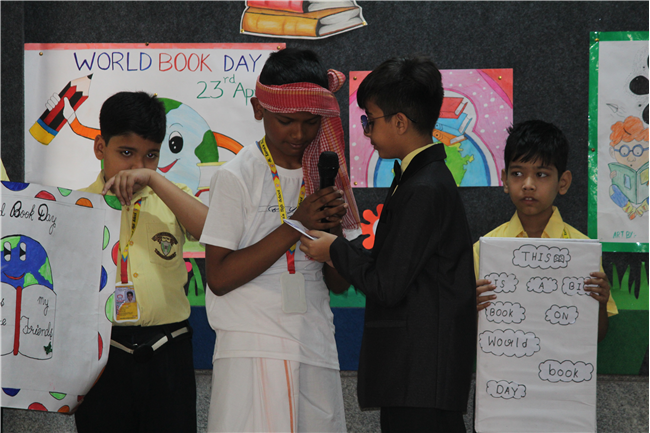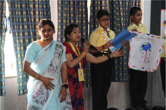 A special assembly was conducted by the Librarian Mukta miss and Rashmi Miss on 23/4/2024. The main aim of conducting the assembly was to spread awareness among everyone that books are our best friends, they are the most loyal companion for everyone. Children presented a song, dance and a skit where they showed that books are above all religion, caste or status. Everyone has the right to get education and the right to read anytime anywhere. The badges were given to the children for the Best Reader, Best performer, Best dialogue delivery, Best anchoring.