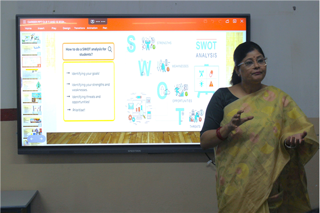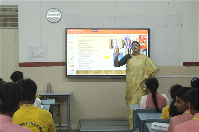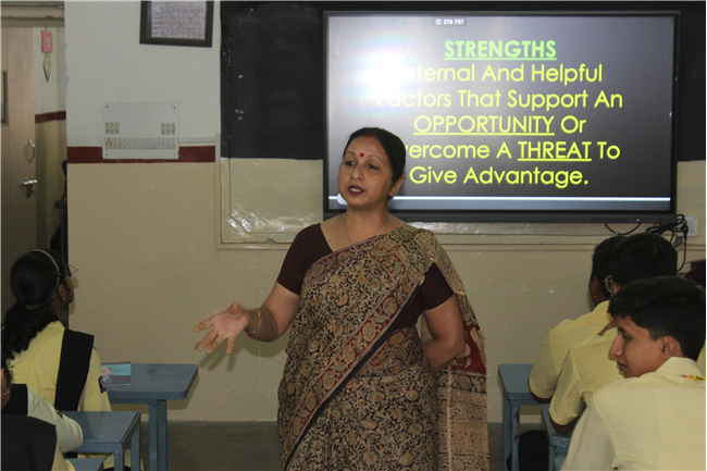 Workshops were conducted for the students of std. 10-B, F, H, J and std. 12-A, B, D, E on career counselling. The workshop commenced with an introductory session explaining the difference between conventional and non- conventional career paths.