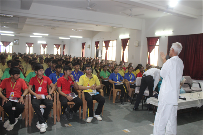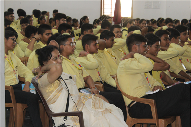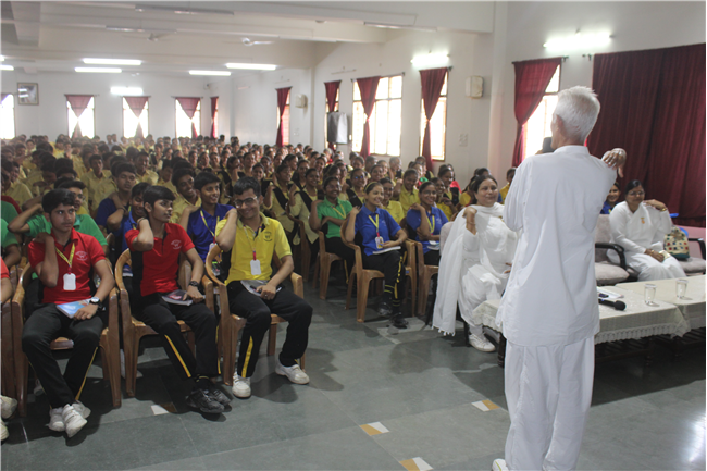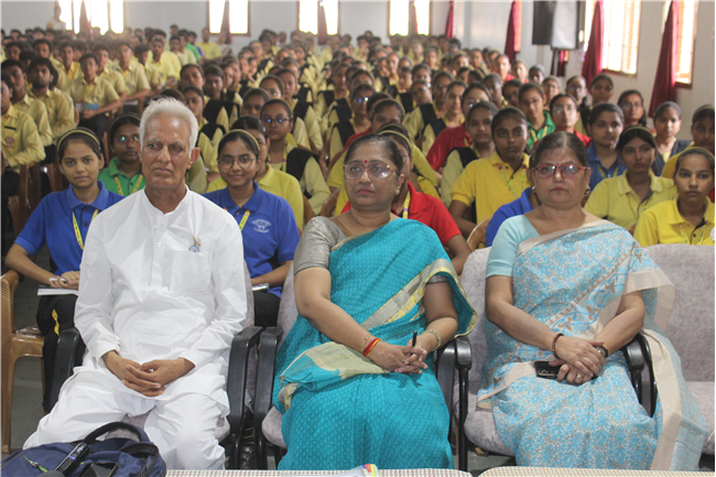 Description: "Empowering Youth: A Workshop on Combating Drug Abuse and Mobile Misuse" An insightful orientation and awareness programme focusing on the Nasha Mukt Bharat Abhiyan and the prevalent issue of mobile phone misuse among students was meticulously organized by Prajapita Brahma Kumaris Ishwariya Vishwa Vidyalaya, Kankarbagh on 08 May 2024 at Pamela Hall. Renowned speaker and motivator, B.K. Rajiv Dhawan, captivated the audience with an intense and engaging workshop tailored for students of STD 10 A, 10B, 10C, 10D, 10E, and 10F. The event commenced with Vice Principal Sanjay Joseph's eloquent introduction, setting the tone for the program, followed by Principal Seema Singh's inspirational message, underscoring the significance of the initiative, and expressing gratitude through a well-deserved vote of thanks. In recognition of his invaluable contribution, Shree Rajiv Dhawan was honoured with a memento, symbolizing appreciation for his efforts in enlightening and empowering the youth.