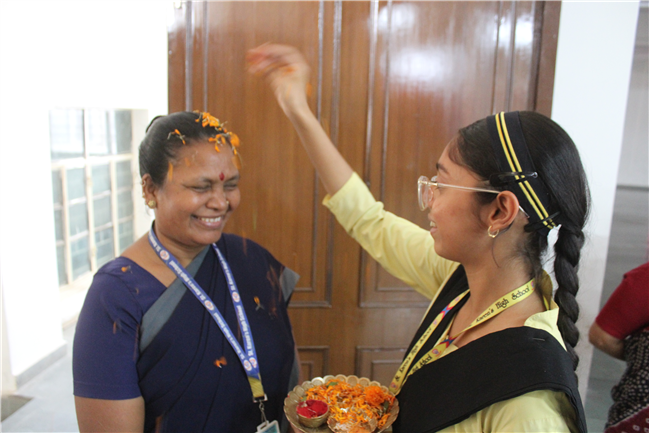 The programme commenced with a prayer song followed by the lighting of the lamp. A welcome dance was organized to welcome the stars for the day – Our support staff. Our beloved Director sir blessed all the support staff with his motivating speech.