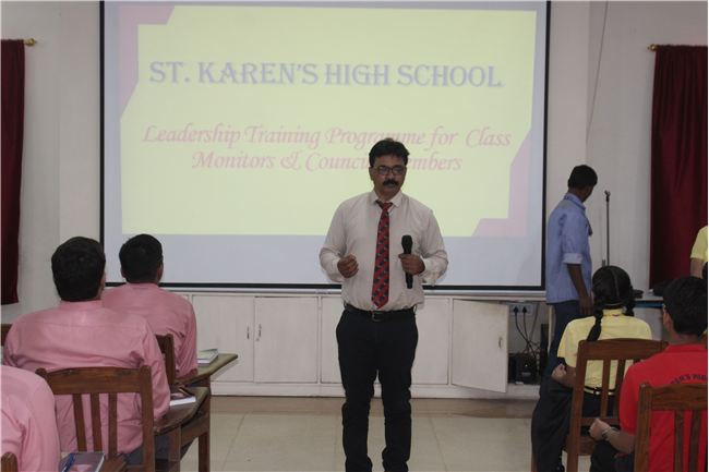 A workshop was conducted today on the topic leadership training and orientation for all the members of the student council. They were told about the characteristics traits of a leader and the 7 qualities of a Karenite student. They were also made aware of their responsibilities and how they should behave with students - juniors as well as seniors.