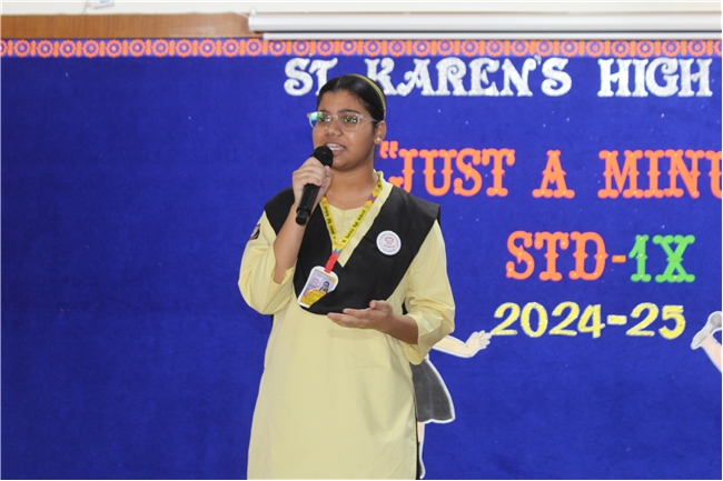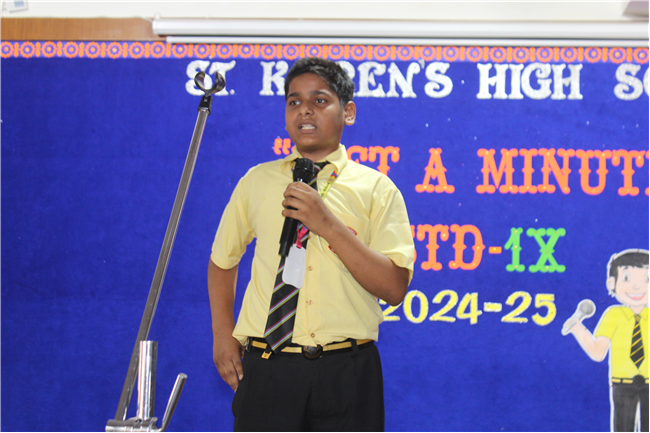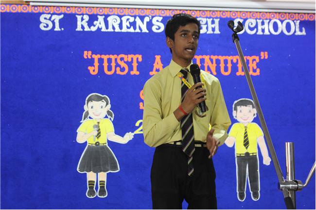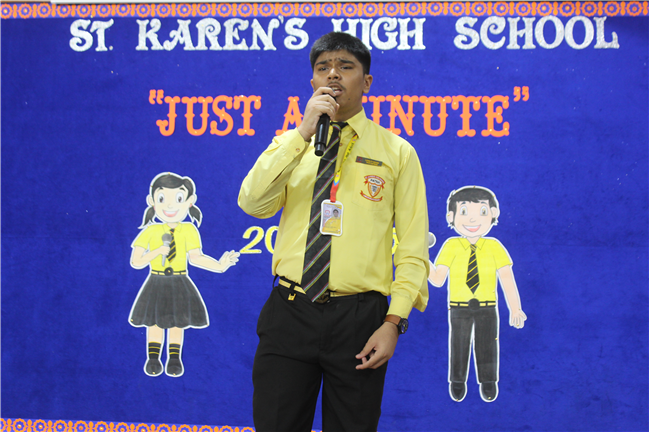 JAM – “ JUST A MINUTE” speaking competition for class 9 was held on 14th May 2024. A total of 19 students from different sections participated in it . All the participants were brimming with confidence and spoke with much eloquence.
