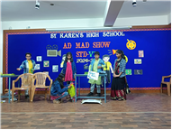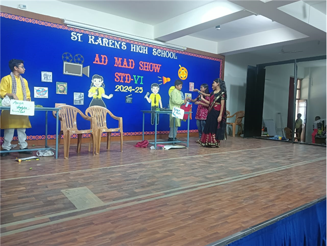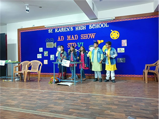 An event ‘Ad Mad Show’ for STD 6 was conducted on 15th May, 2024. Advertisement creates awareness of brands, products and ideas. The students, with their innovative and creative thoughts, presented amazing and organic product on the topic ‘Food Habits’ , ‘Child Labour’ and ‘Say no to Plastic’. There were ten groups in total and they participated with full enthusiasm.