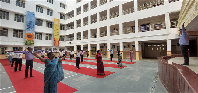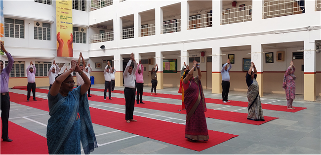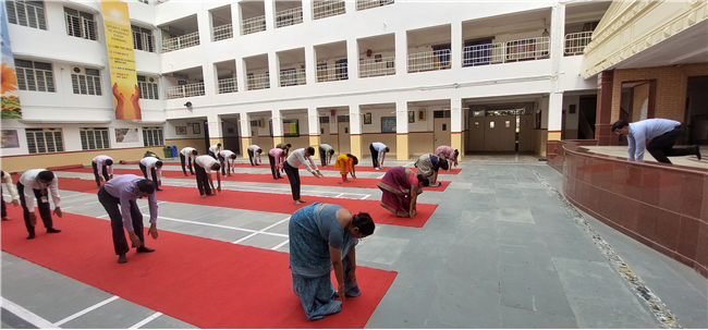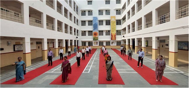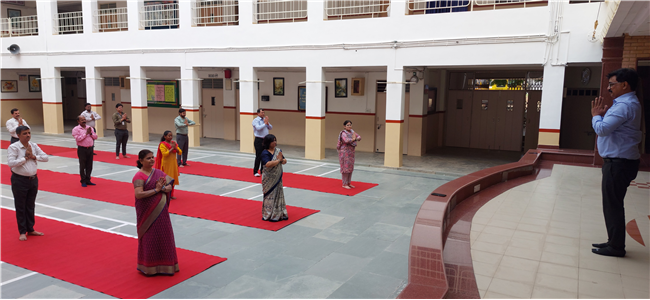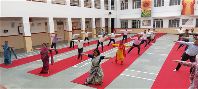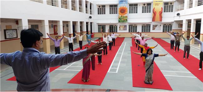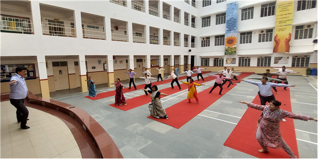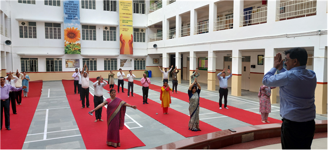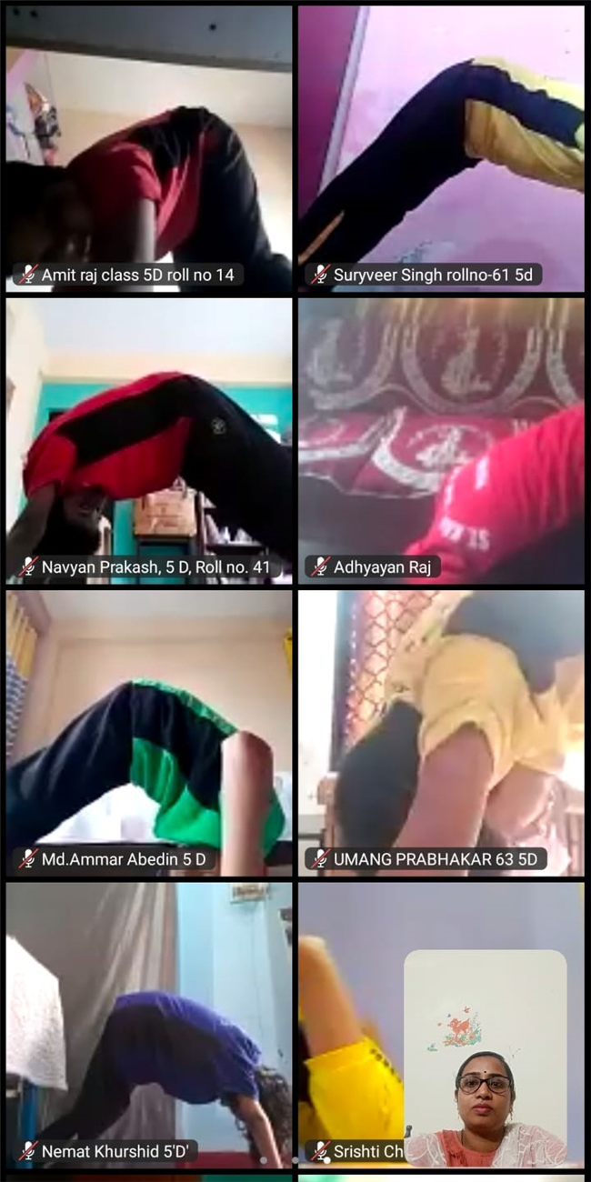Description: Today, 21st June 2024, St. Karen's High School commemorated International Yoga Day with great enthusiasm and participation from students, parents, teachers, and staff, despite the closure of the school due to harsh summer conditions. The event was marked by a unique virtual gathering on platforms like Zoom and Google Meet, where students, along with their families and teachers, engaged in mass yoga exercises. The initiative aimed to promote physical fitness and well-being among all members of the school community. Vice Principal Sanjay Joseph & PT instructors- Dipak Tiwari, Manoj Kumar, Roshan Ara & Neha led the mass yoga drill, guiding everyone through various yoga postures and exercises. The atmosphere was one of camaraderie and positivity, with participants fully embracing the spirit of yoga and its benefits for both physical and mental health. Principal Mrs. Seema Singh emphasized the importance of yoga in maintaining physical fitness and encouraged everyone to prioritize regular physical activity.