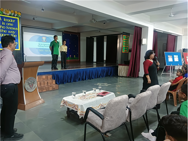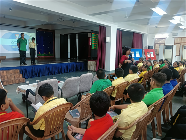 Group counselling session was conducted for the students of Std. VI(A-J) on the topic ‘Bullying’. The students were asked if they knew what is bullying. Most of the students knew about it. Students were told not to be mute spectators and speak against bullying. They were also told neither to bully nor be bullied. They were shown a short film on the negative impact of bullying and being bullied.