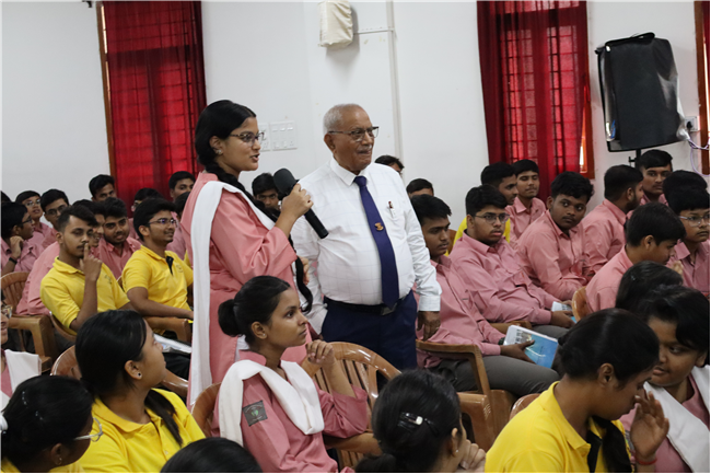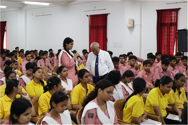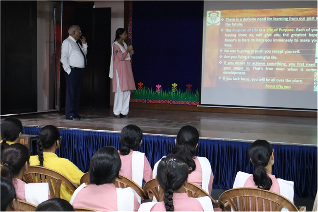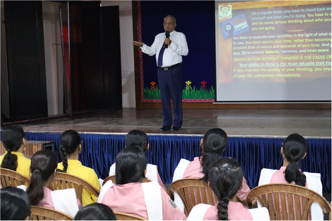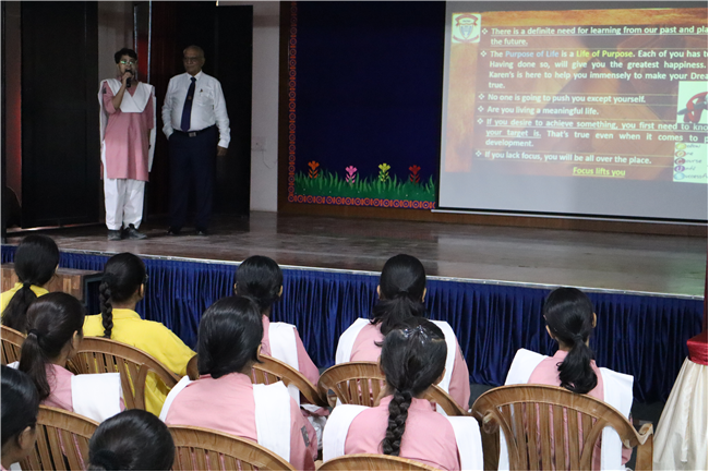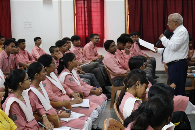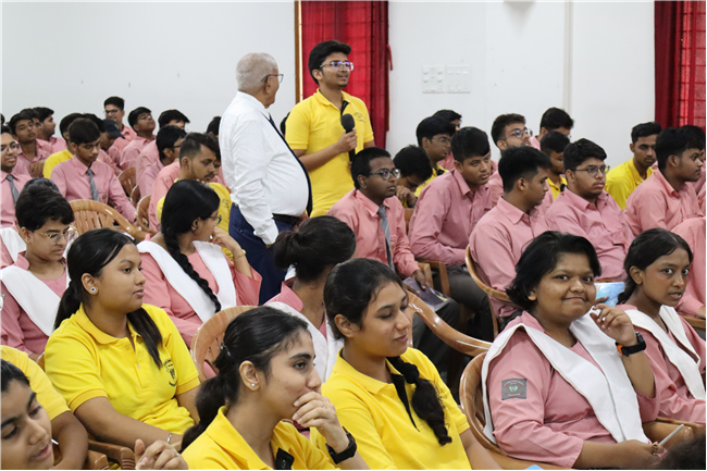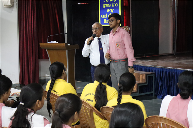 Description: A memorable and productive career counseling session was conducted by the Honorable Director, Mr. DP Galstaun, for the students of Class XI. The session began with the inspiring journey of Arnal Benett, underscoring the essence that "Time cannot be borrowed from tomorrow—it is the present moment that counts." Sir emphasised the crucial roles of physical and mental health in a student's life. The interactive session covered a wide range of topics, including social issues, personal goals, and effective time management. He reiterated the importance of combining talent with initiative, quoting, "Talent combined with initiative leads to success." The session left the students inspired and motivated, with a clearer understanding of the importance of time management, health, and initiative in achieving their personal and academic goals.