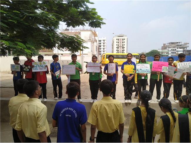 St. Karen’s High School has taken an initiative to instill the value of cleanliness in the children. The students of Std. 6-A brought awareness amongst students about how to keep the surrounding clean. They showed banners and raised slogans.