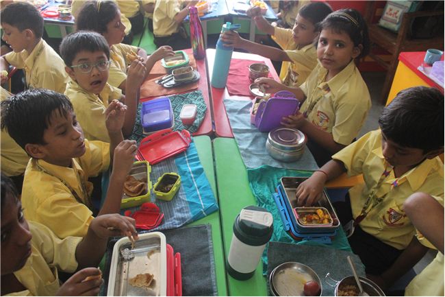 During recess children shared their healthy home made food with their friends and understood the importance of having healthy food and following healthy habits.