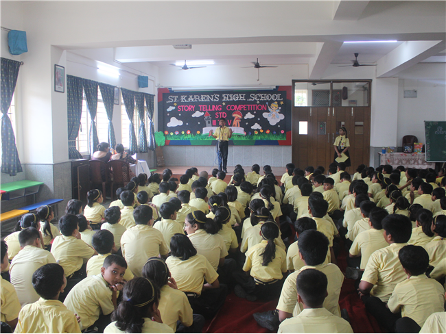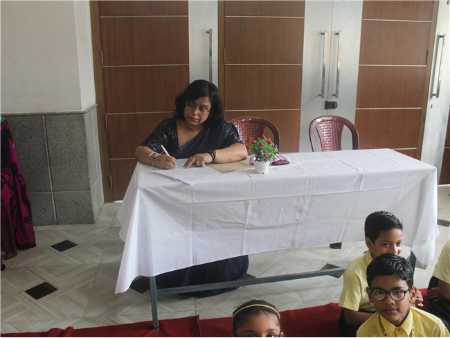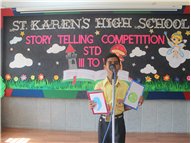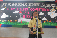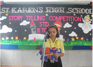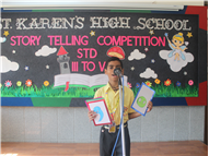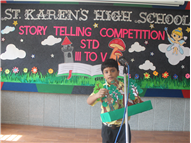 Description: Our school organized a story telling competition for Grade 3,4 & 5. Two participants from each class participated in this competition in which three were for Hindi and three for English stories. The judges were- Mrs.Manjula Bhattacharya and Mrs Mukta Rani. The students performed very well. Co-ordinator ma'am appreciated the efforts of the students. The students gave their best under the guidance of their teachers. The winners were- 1st- Aditya Kumar (5 A) 2nd- Ashlesha Jha (5 D) 3rd- Kushagra Mittal (3D)