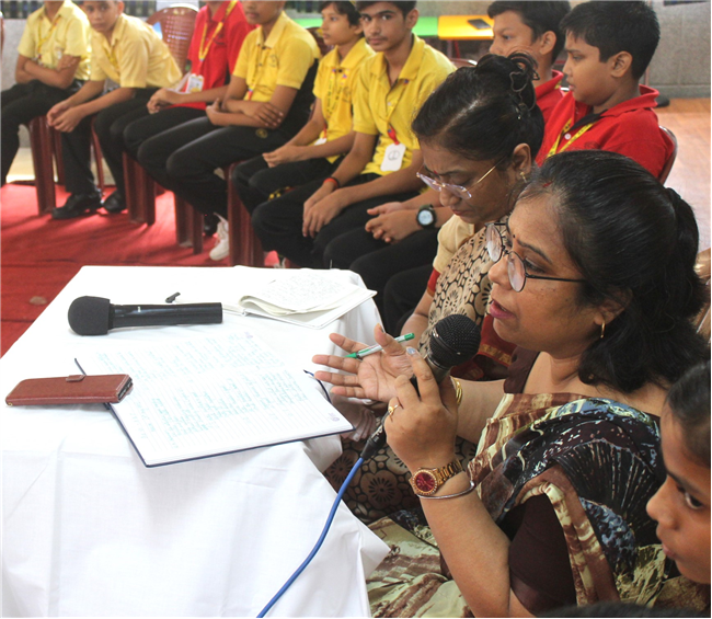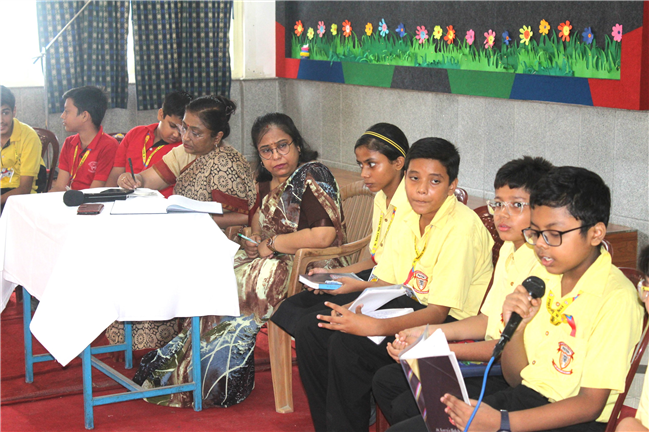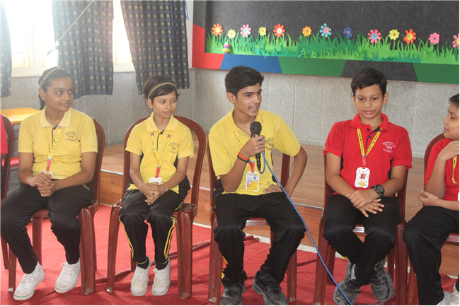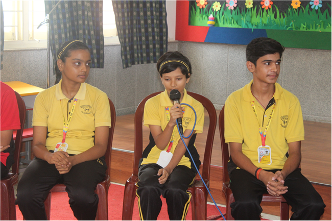 Students forum of std 6 was conducted today. Five students from each section of std 6 were selected randomly and asked to give a feedback about their school -what they liked and what they want to improve. Their response was noted down with an assurance to do the needful.