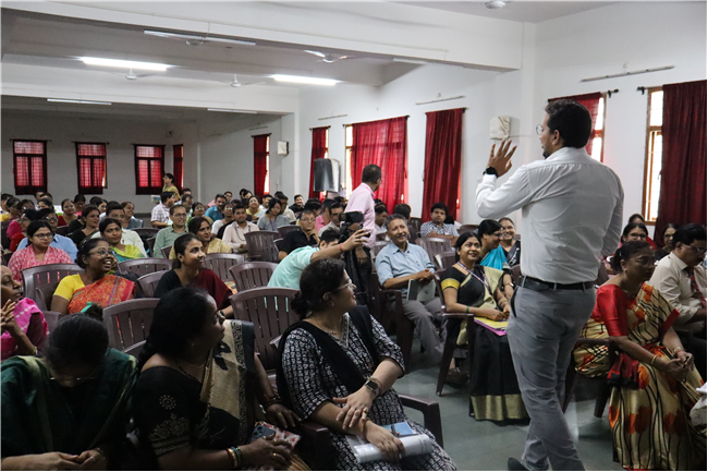 Description: A Competency Building Programme for teachers was conducted by the Patliputra Sahodaya today on the topic Assessment. Mr.Vikas Kumar ,the resource person for the day explained the nuances of assessment to the teachers through various activities. It was a very informative session.